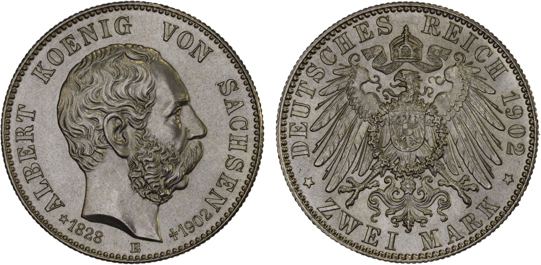 SAXONY: Friedrich August III, 1904–1918, AR 2 mark, 1902-E, Unc