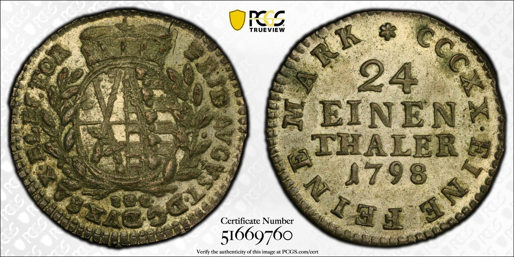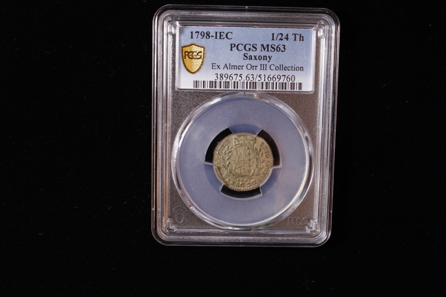 SAXONY: Friedrich August III, Elector, 1763-1806, AR 1/24 thaler, Dresden, 1798, KM-968, Cr-98, mint master initials IEC, a lovely mint state example! PCGS graded MS63, ex Almer H. Orr III Collection. Frederick Augustus I was a member of the House of Wettin who reigned as the last Elector of Saxony from 1763 to 1806 (as Frederick Augustus III) and as the first King of Saxony from 1806 to 1827. He was also Duke of Warsaw from 1807 to 1815. Not to be confused with Friedrich August III, 1904-1918, the last King of Saxony.