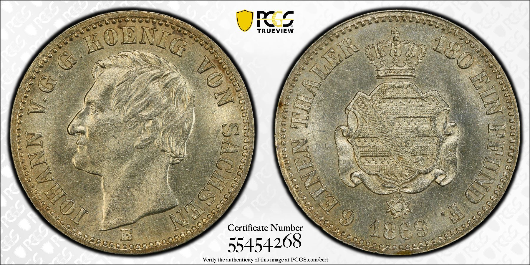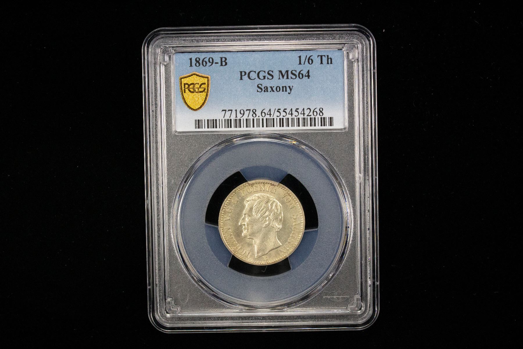 SAXONY: Johann, 1854-1872, AR 1/6 thaler, 1869, PCGS MS64