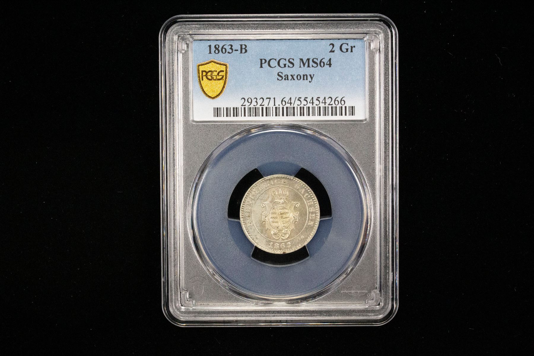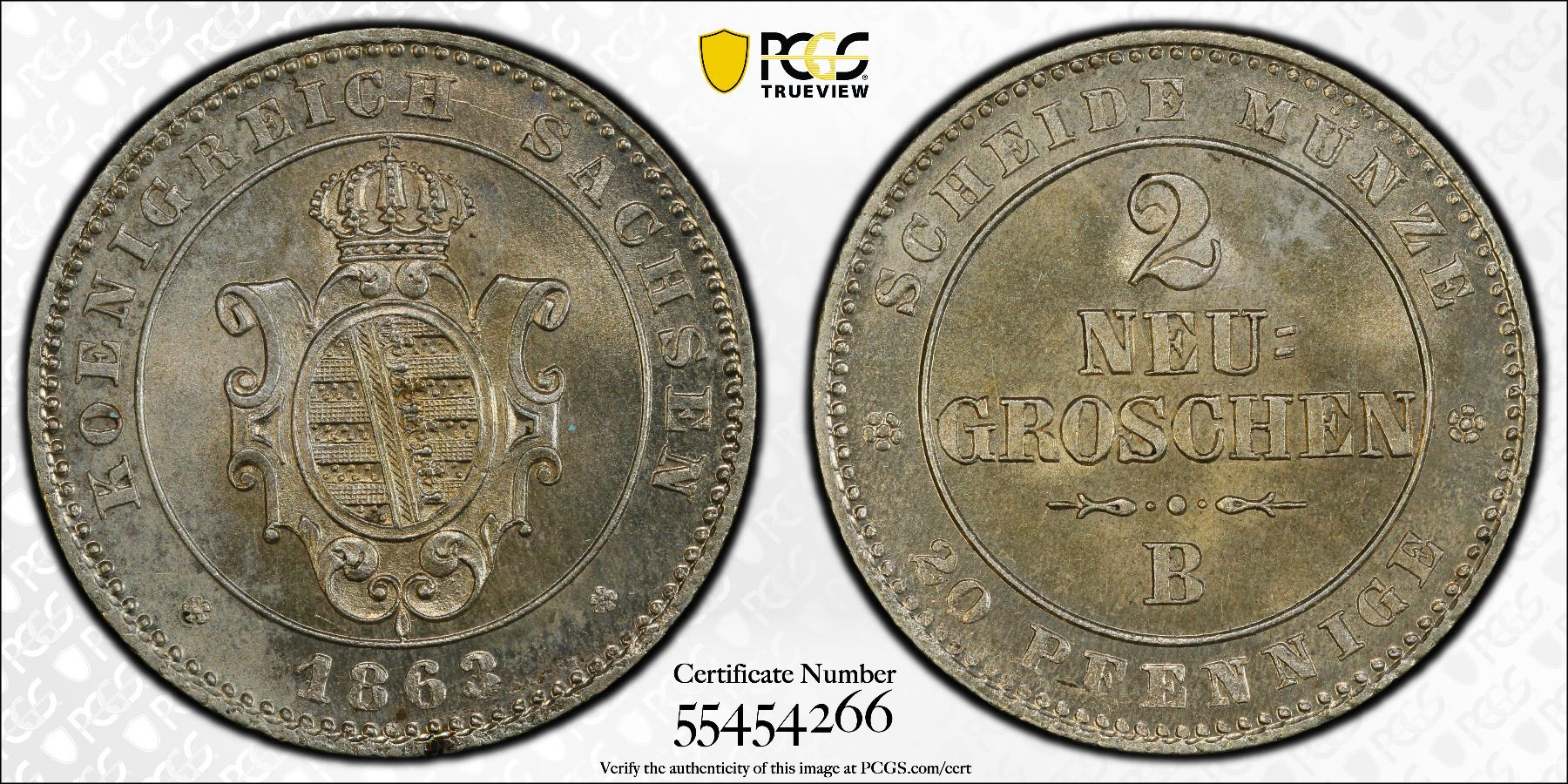 SAXONY: Johann, 1854-1872, AR 2 groschen, 1863, PCGS MS64
