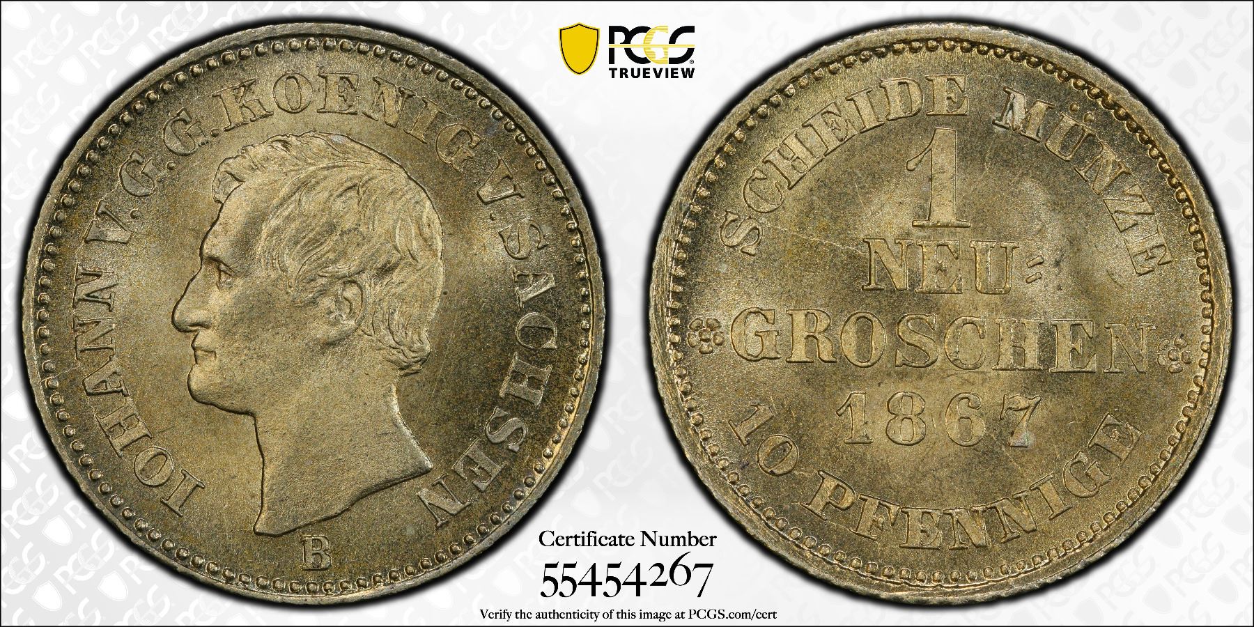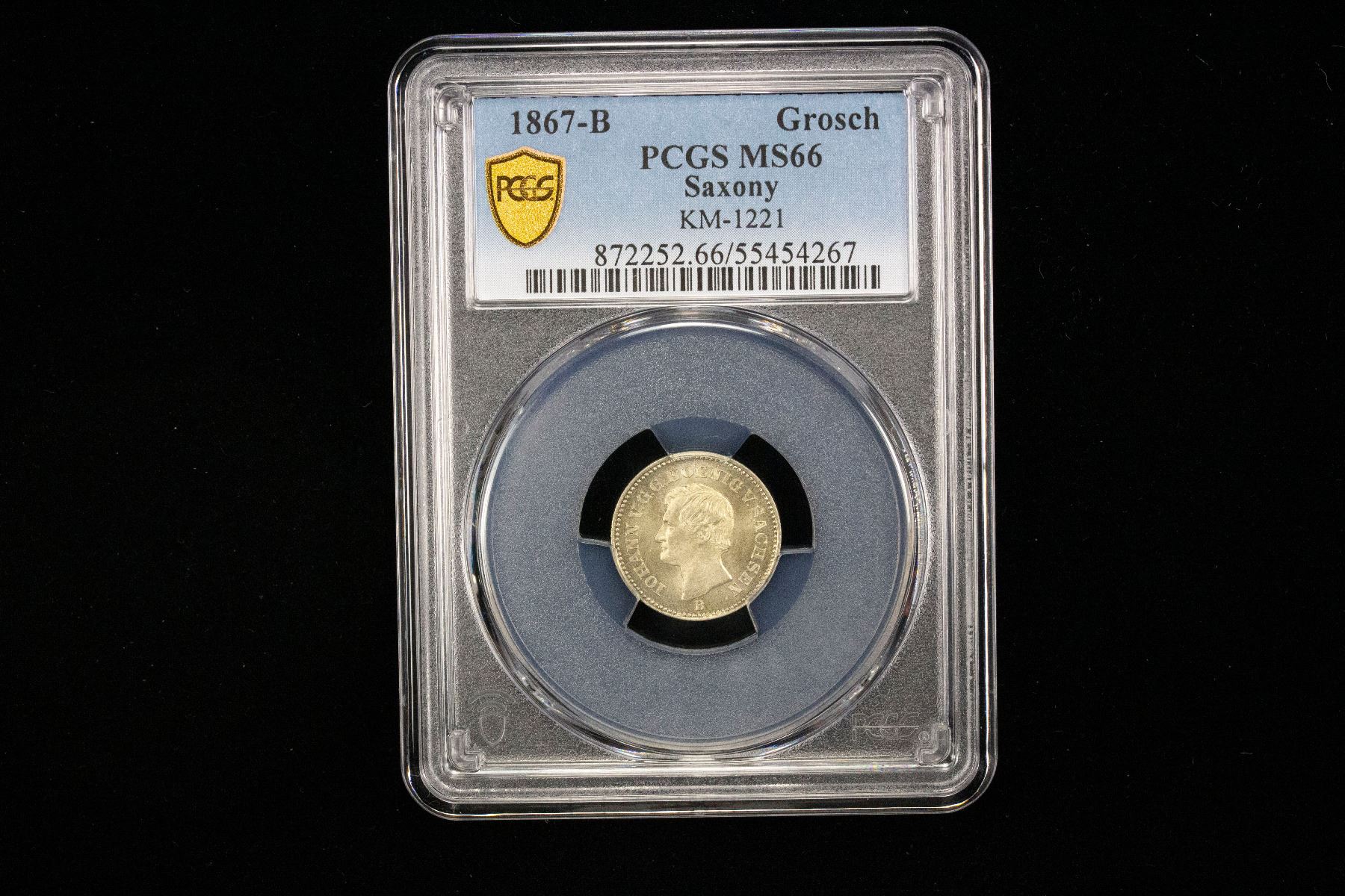 SAXONY: Johann, 1854-1872, AR groschen, 1867, PCGS MS66