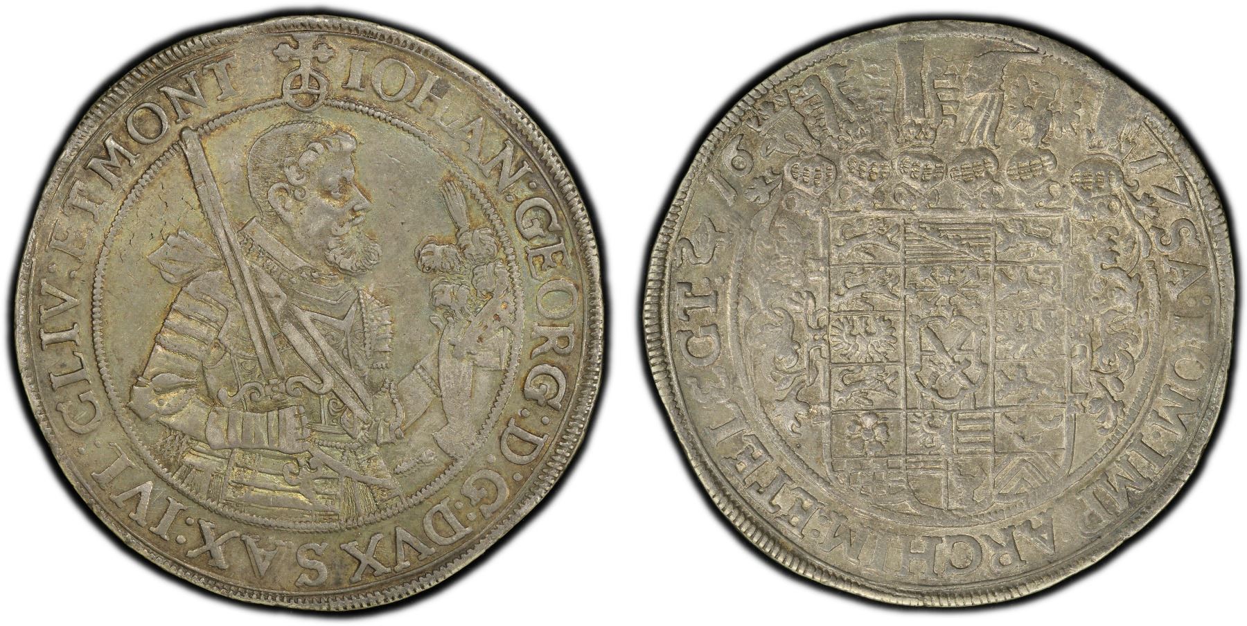 SAXONY: Johann Georg I, 1591-1656, AR thaler, Dresden, 1617, PCGS AU55