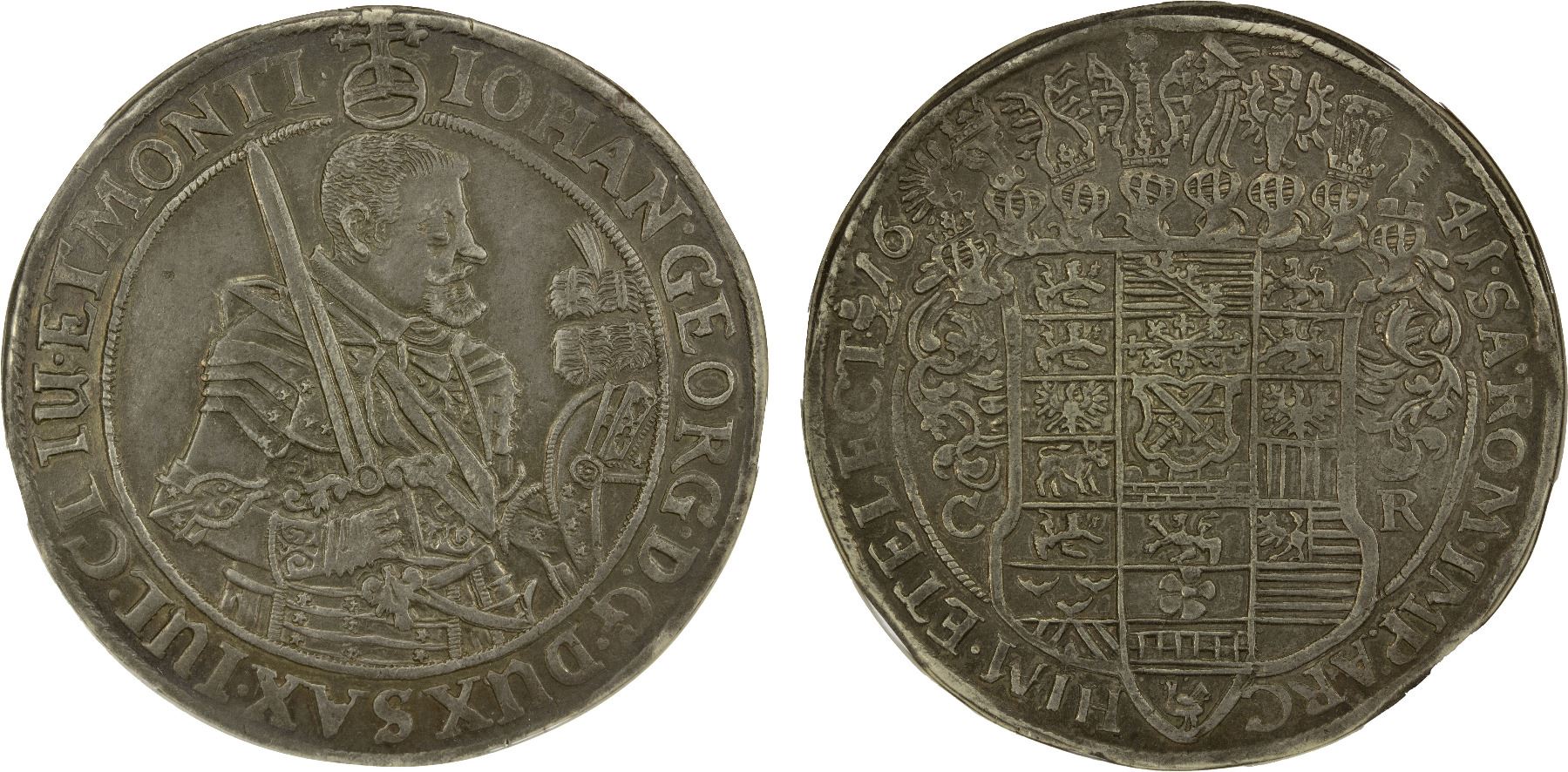 SAXONY: Johann Georg I, 1591-1656, AR thaler, Dresden, 1641, NGC AU53