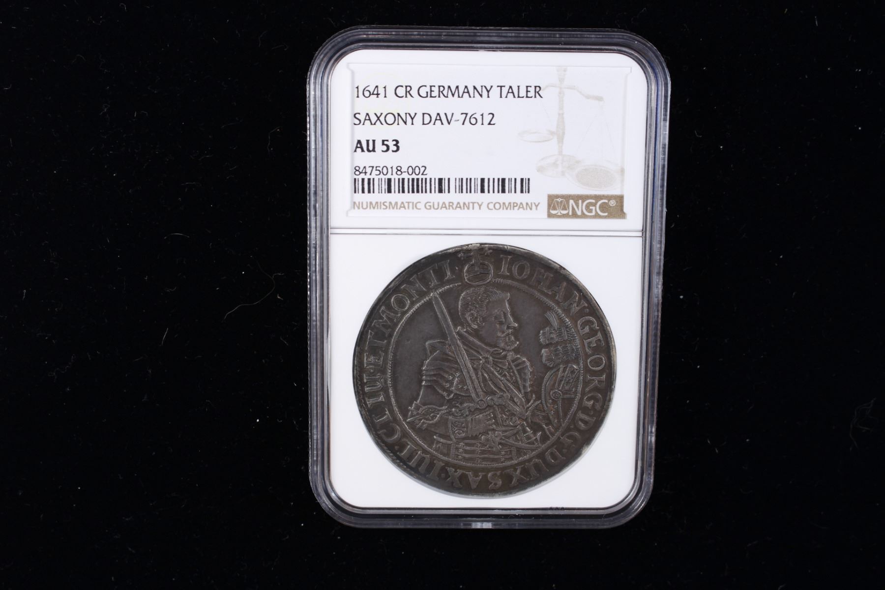 SAXONY: Johann Georg I, 1591-1656, AR thaler, Dresden, 1641, KM-425, Dav-7612, mintmaster initials CR, an attractive lustrous example, NGC graded AU53.