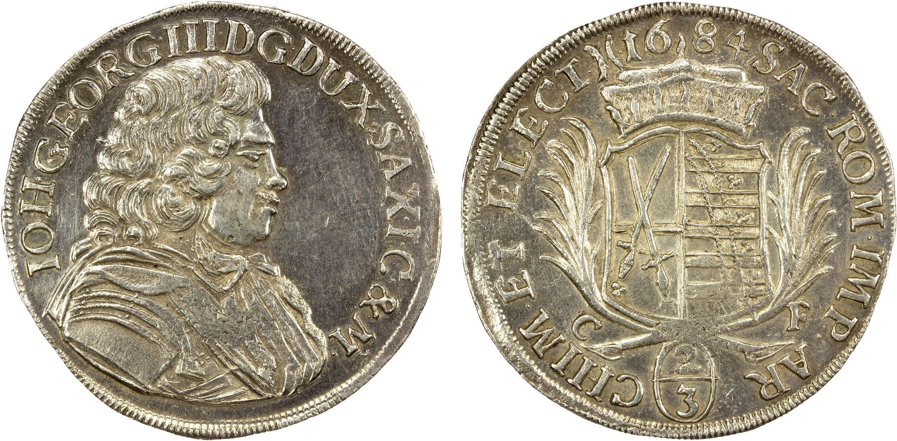 SAXONY: Johann Georg III, Elector, 1680-1691, AR 2/3 thaler, 1684, EF