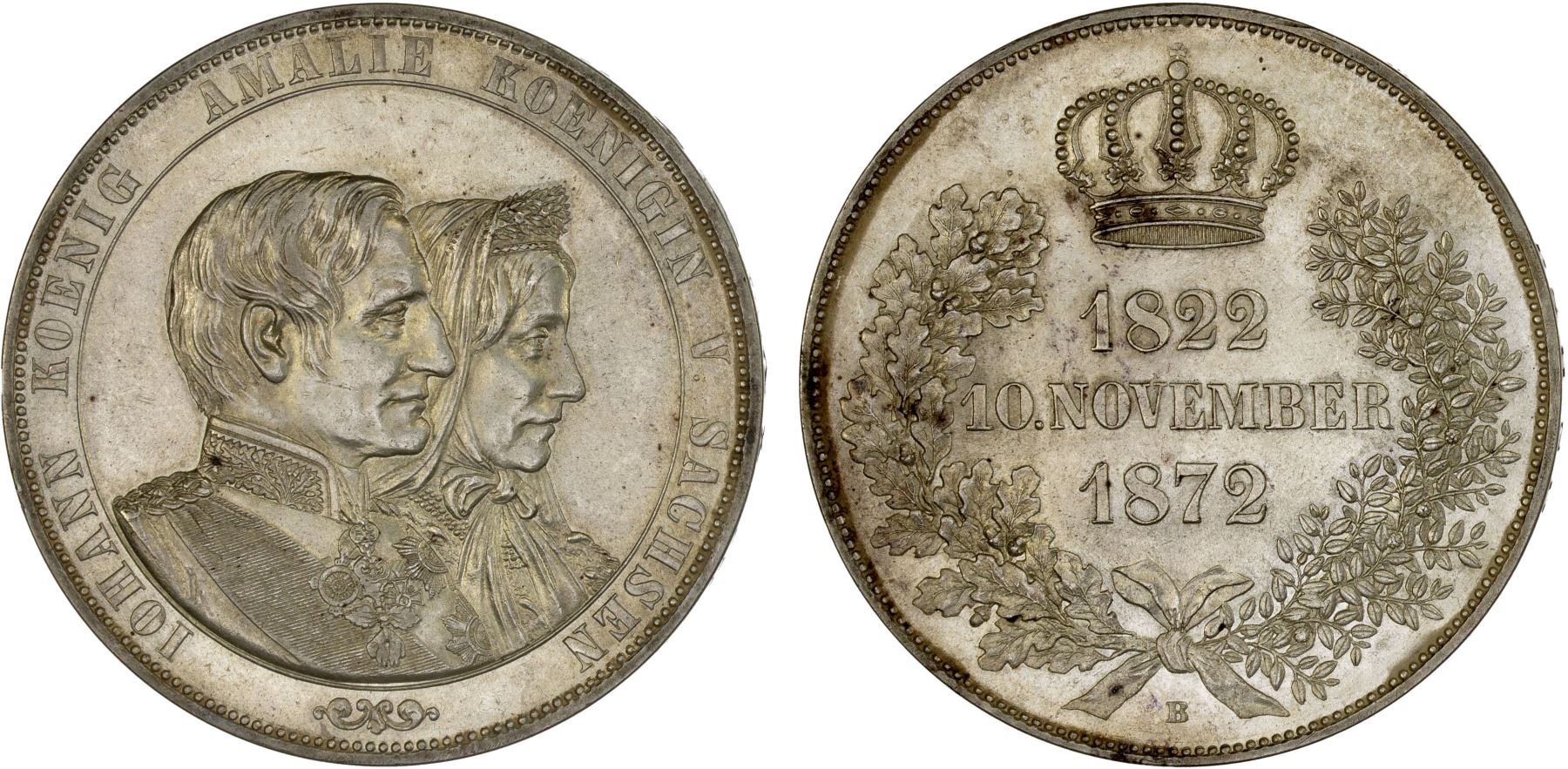 SAXONY: Johann I, 1854-1873, AR 2 thaler, 1872, KM-1231.1, Dav-899, some very minor hairlines from an old cleaning that have re-toned, a choice example, AU.