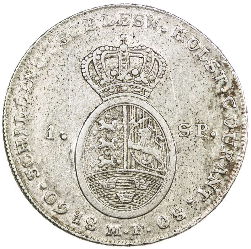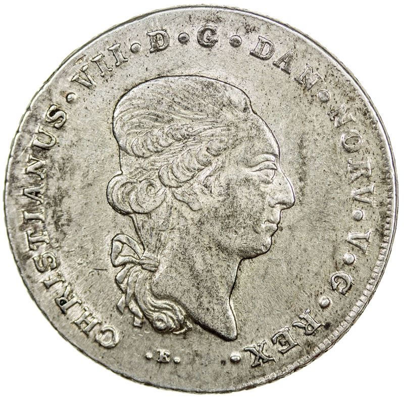SCHLESWIG-HOLSTEIN: Christian VII, 1766-1808, AR 60 schilling (28.87g), Altona, 1808-MF, KM-138.1, Cr-9. Dav-70., choice EF to About Unc.