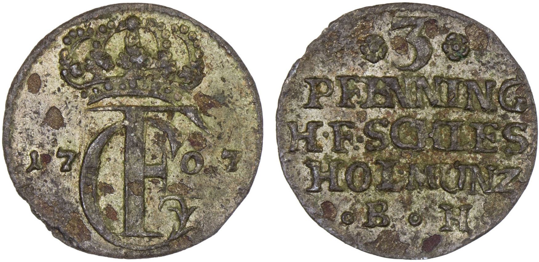 SCHLESWIG-HOLSTEIN-GOTTORP: Karl Friedrich, 1702-1739, BI 3 pfennig, 1707, XF