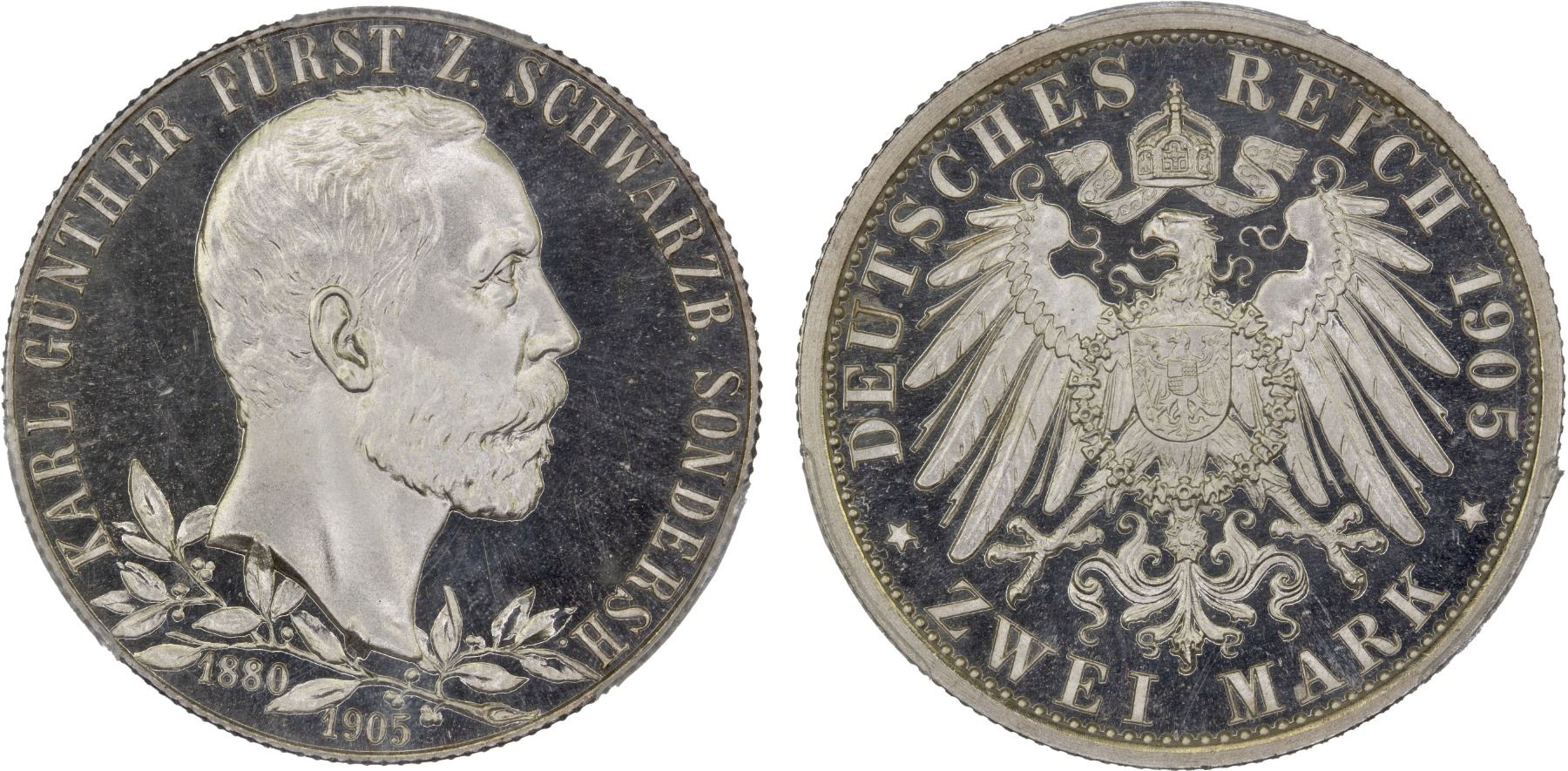 SCHWARZBURG-SONDERSHAUSEN: Karl Günther, 1880-1909, AR 2 mark, 1905, PCGS Proof 66 DCAM