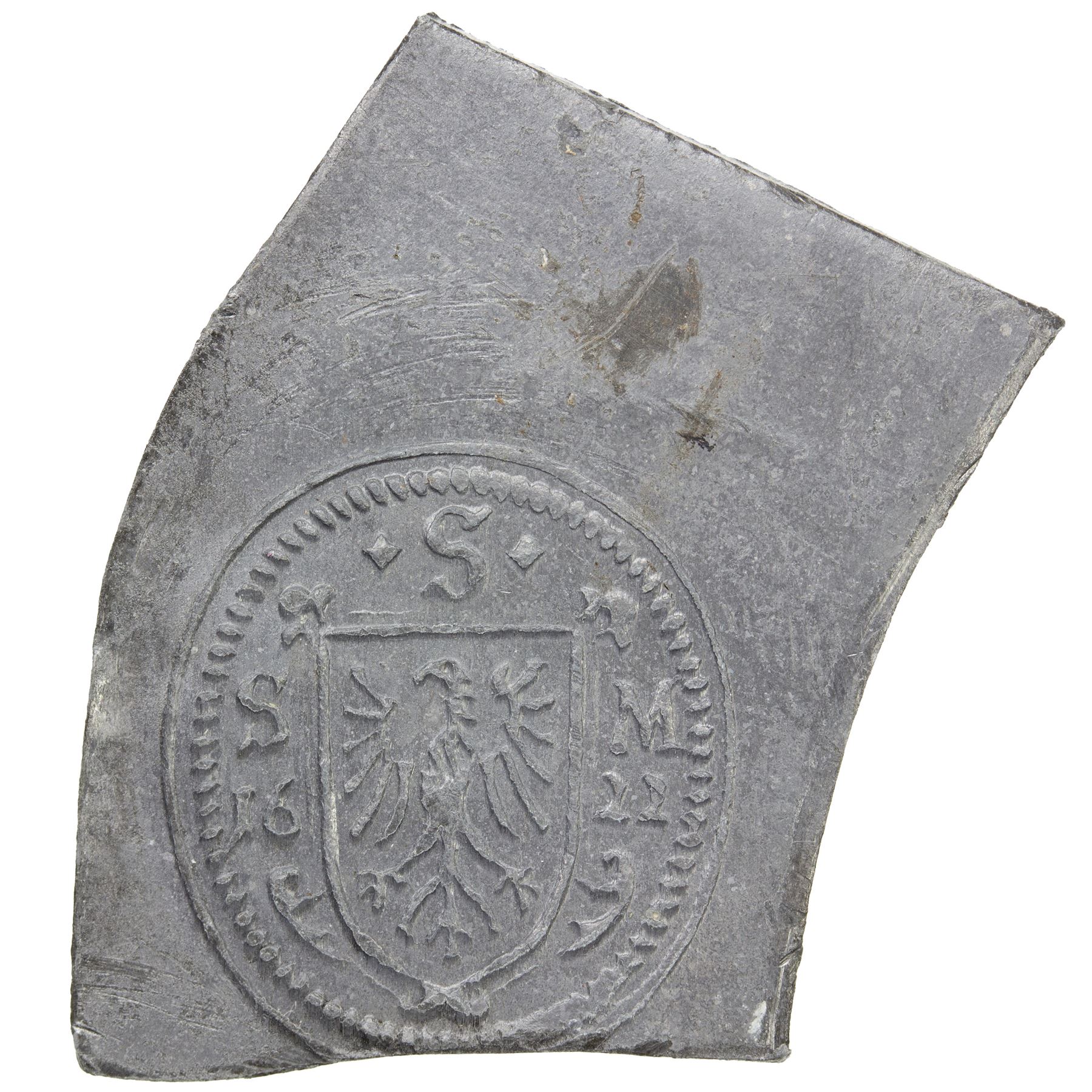 SCHWEINFURT: Free City, 1/84 gulden (5.60g), 1622, as KM-1, as Eklund-1459, die trial on curved piece of lead strip, interesting oddity, Unc, ex Joe Sedillot Collection. One source says these may be of a later period.