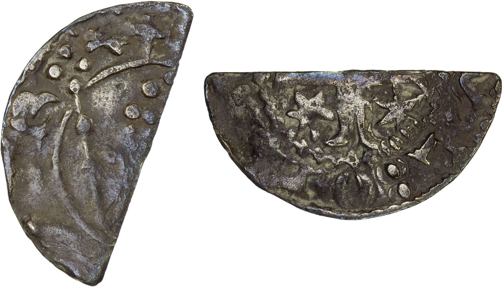 SCOTLAND: William I, 1165-1214, AR cut halfpenny (0.57g), Roxburgh, ND, cf. S-5028, cut from S-5028 penny (half), moneyer: Raul Derling, a bit weakly struck, Fine.