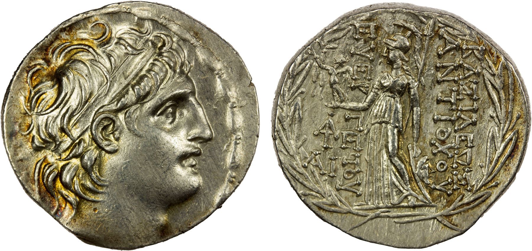 SELEUKID KINGDOM: Antiochus VII Euergetes (Sidetes), 138-129 BC, AR tetradrachm (16.64g), Antioch on the Orontes, SC-2061.1m, diademed head right // Athena Nikephoros standing left, monogram above AI to outer left, all within laurel wreath, a couple light scratches on obverse, lightly cleaned, EF.