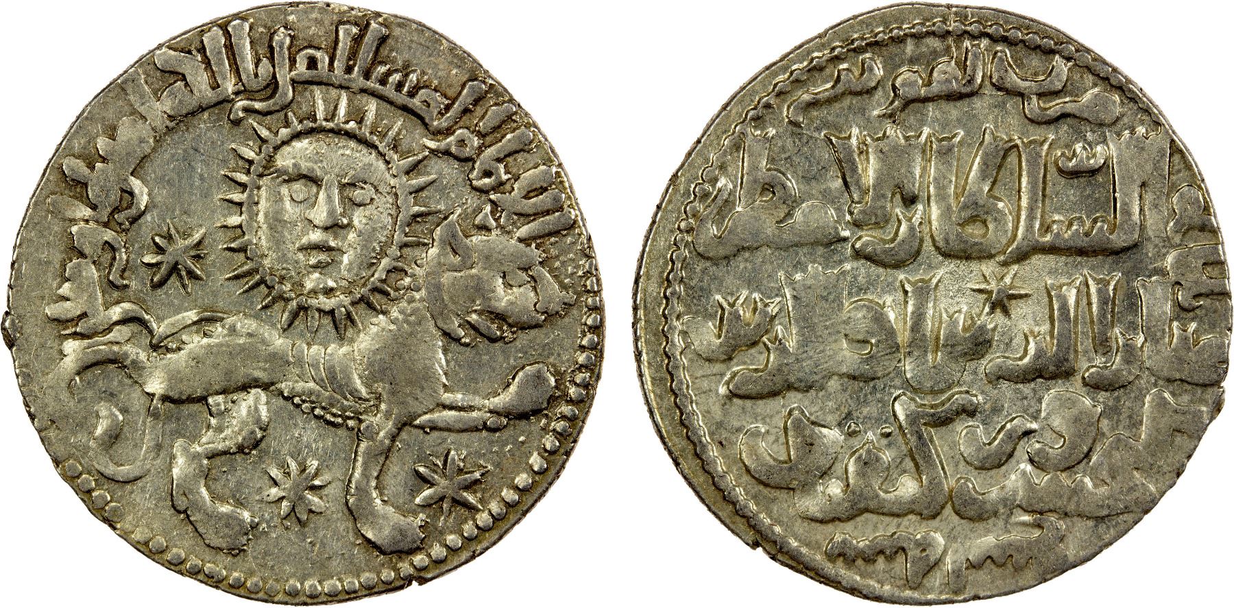 SELJUQ OF RUM: Kaykhusraw II, 1236-1245, AR dirham (2.89g), Konya, AH639, A-1218, lion & sun motif, some original luster, bold sun-face, AU