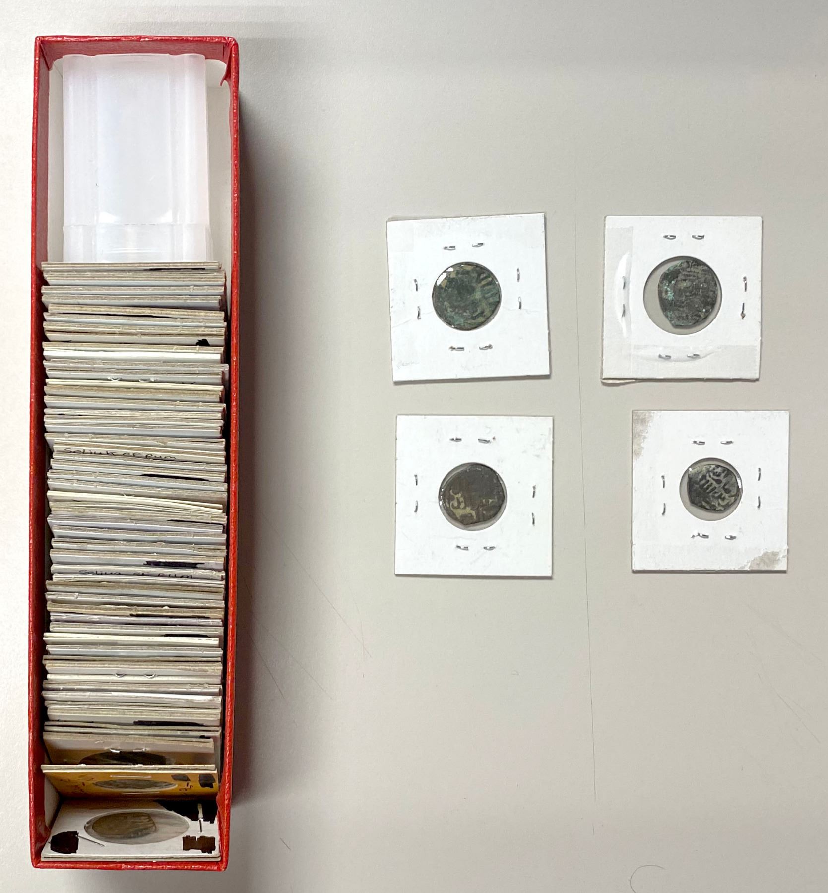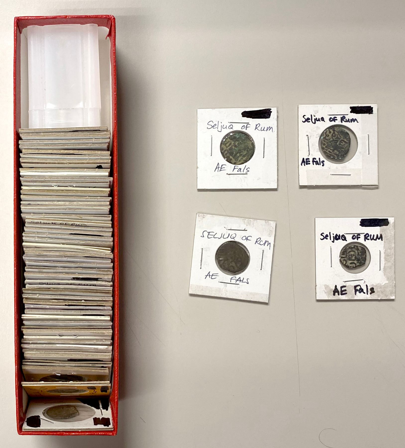 SELJUQ OF RUM: LOT of 56 copper coins, mostly from various rulers from Kayqubad I through Kayka'us I, some identifiable, average condition Fair to VG; retail value $180, lot of 56 pieces.