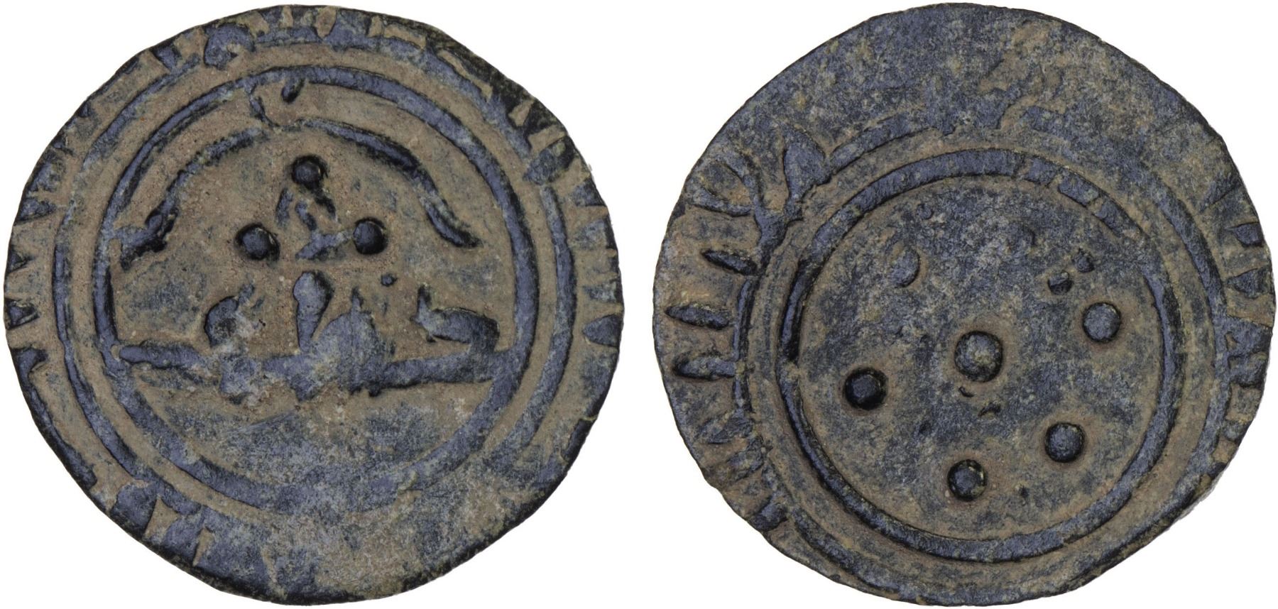 SELJUQ OF SYRIA: Duqaq, 1095-1104, BI dirham (1.04g), NM, ND, A-A778, just the name duqâq in the center // 7 pellets in the center; traces of marginal legends, which appear to be the kalima; unpublished, VF, RRR.