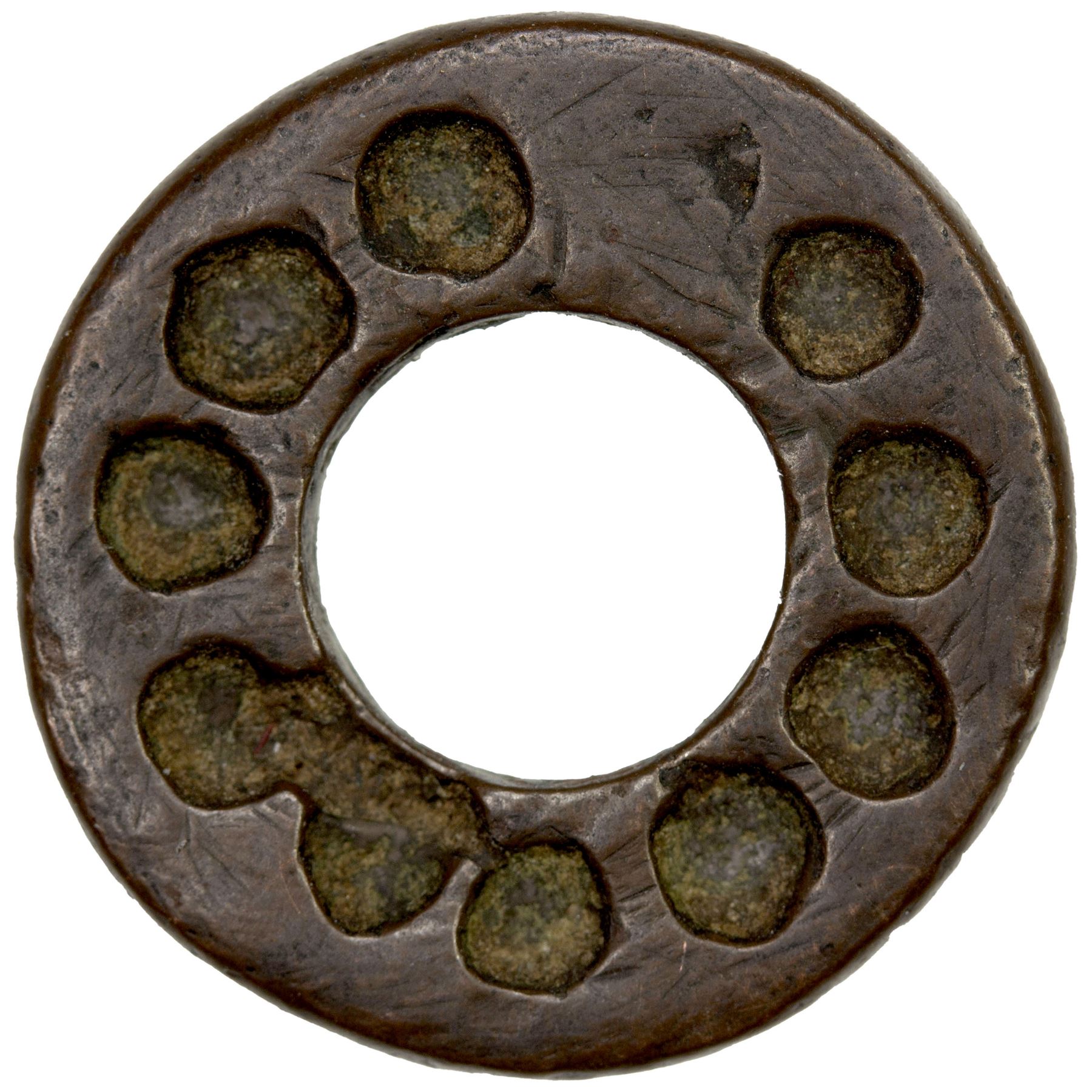 SEMIRECH'E: Anonymous, 7th/8th century, AE cash (4.92g), Zeno-128840, local currency, found around Semirech'e, derived from ancient Chinese spindle whorls; 10 incused dots on obverse, 11 on reverse, VF, R.
