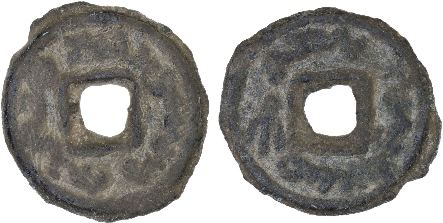 SEMIRECH'E: Tukhus Tribe: Anonymous, ca. 640-710, AE cash (1.05g), cf. Zeno-289243, Sogdian legends twrkys gagan pny // wg'tmysh gwßw with tamgha, nice Fine, R.