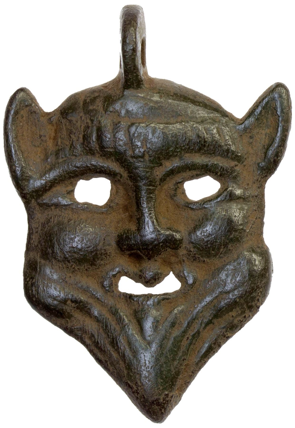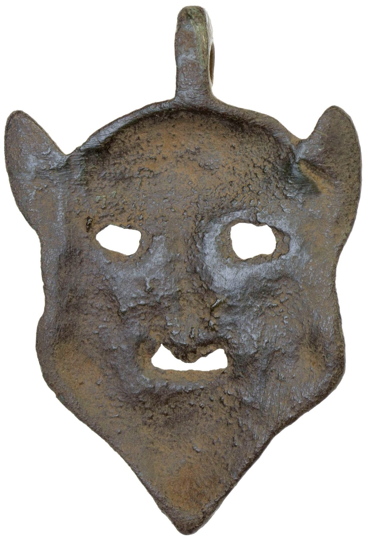 SEMIRECH'E: bronze charm (4.78g) (37 x 25.5mm) facing head, with beard, used as a symbolic mask, VF-XF, RR. A similar piece sold in our Auction 45 lot 1773.