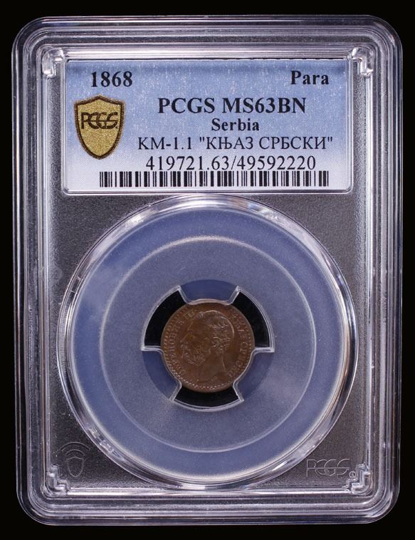 SERBIA: Mihailo Obrenovic III, 2nd reign, 1860-1868, AE para, 1868, PCGS MS63 BN