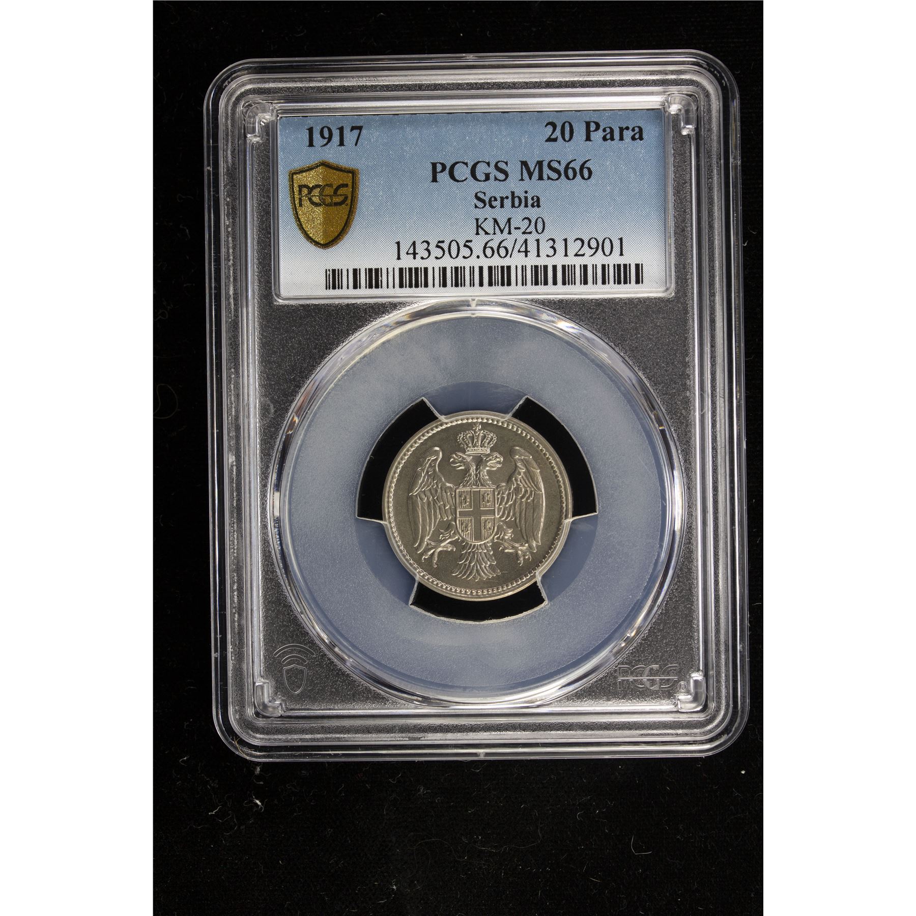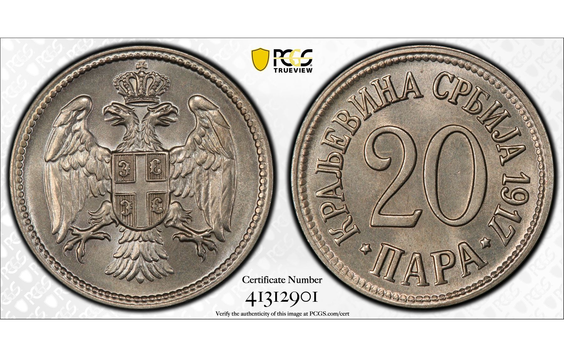 SERBIA: Peter I, 1903-1918, 20 para, KM-20, a fantastic example! PCGS graded MS66.