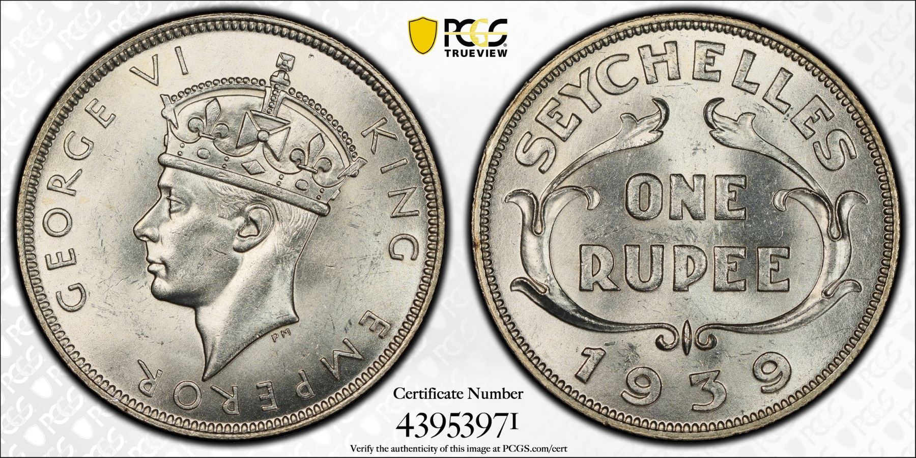 SEYCHELLES: George VI, 1936-1952, AR rupee, 1939, PCGS MS64