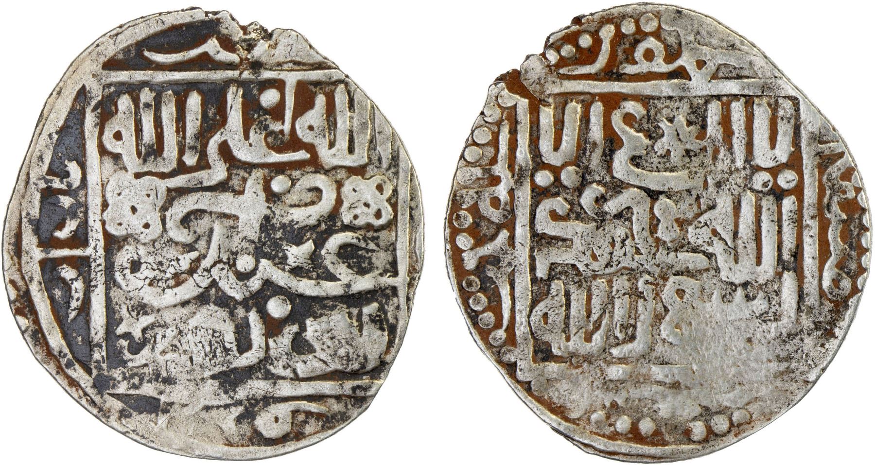 SHAHS OF BADAKHSHAN: Nawruz, 1270s-1290s, AR dirham (2.26g), AH695, A-M2014, Zeno-42722 (same obverse die), complete legend Allah a'lâ Allah 'abduhu nawruz with the tamgha of Qaidu above 'abduhu // kalima, date in the margins, one spot of weakness, VF, RRRR. This piece completes the legends on the rather inferior example posted on Zeno.