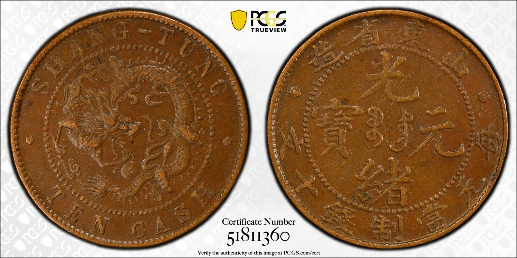 SHANTUNG: Kuang Hsu, 1875-1908, AE 10 cash, ND (1904-05), PCGS EF45