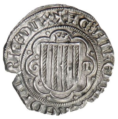 SICILY: Federico IV, il Semplice, 1355-1377, AR pierreale (3.25g), Messina, eagle within octagon / shield with arms of Aragon in octagon, small crown above, G M either side, slightly irregular planchet typical for reign, EF.
