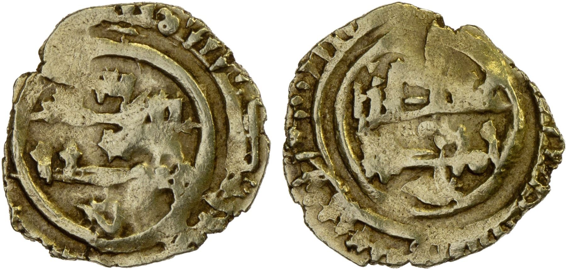 SICILY: Roger I, 1072-1101, AV tari (1.00g), cf. MEC-14-2, anonymous imitation of a Fatimid 1/4 dinar, blundered Arabic legends, probably struck during or shortly after the period 1070-1075 when the Normans effectively ousted the Fatimids, Fine, ex CNA Auction VIII, Lot 699.