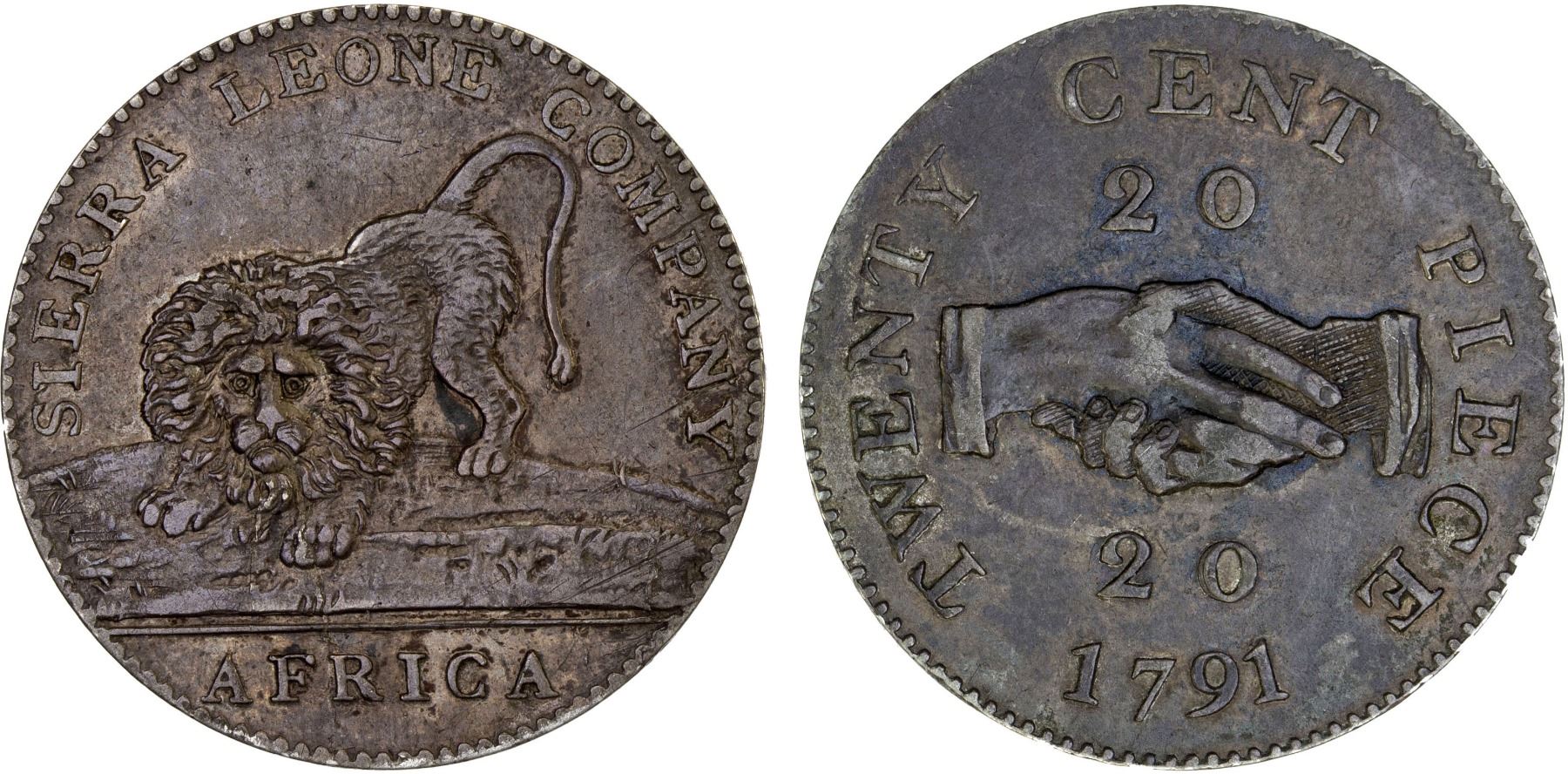 SIERRA LEONE: Sierra Leone Company, AR 20 cents, 1791, XF