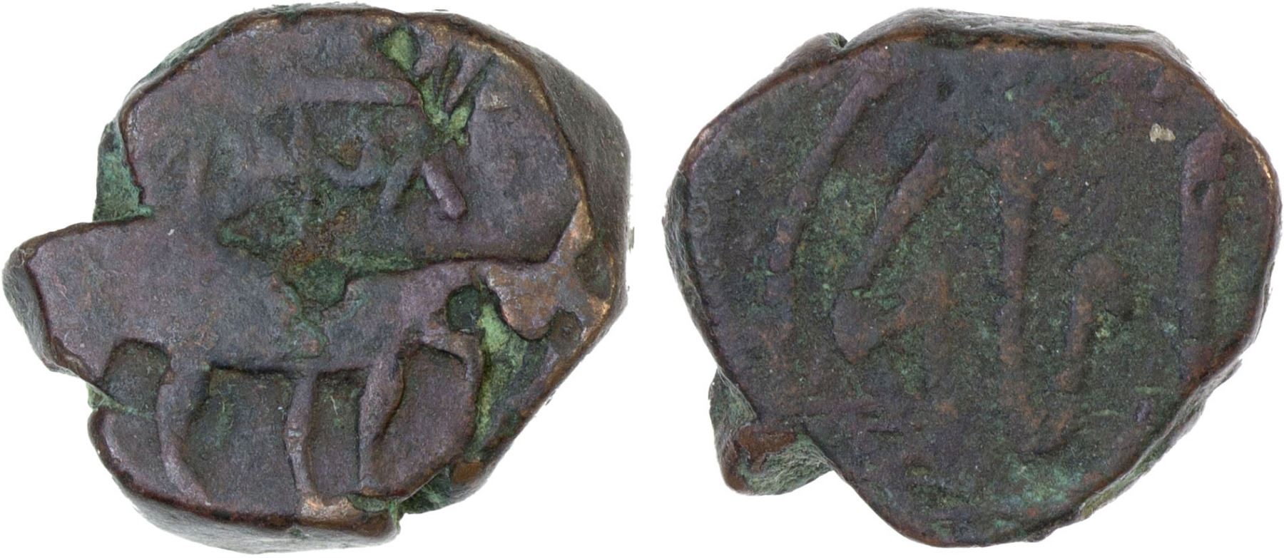 SIKH EMPIRE: AE fals (paisa) (7.52g), [Derajat], AH1248, KM-C102, DS-DJ11, lion left, date above // Arabic rayij ("current"), VF, R.