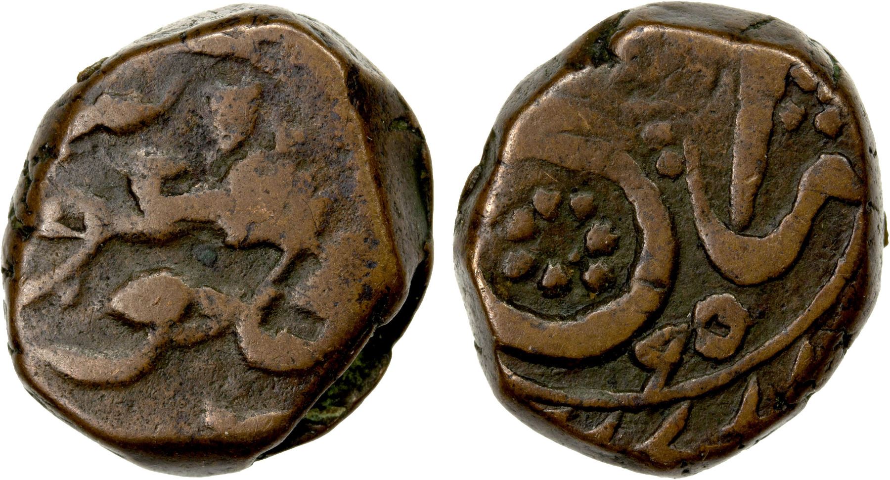 SIKH EMPIRE: AE falus (paisa) (7.55g), Dera, VS(18)95, KM-, Herrli-, mint formula & flower (?) // rayij and date [18]95, probably unpublished, lovely F-VF, RR.