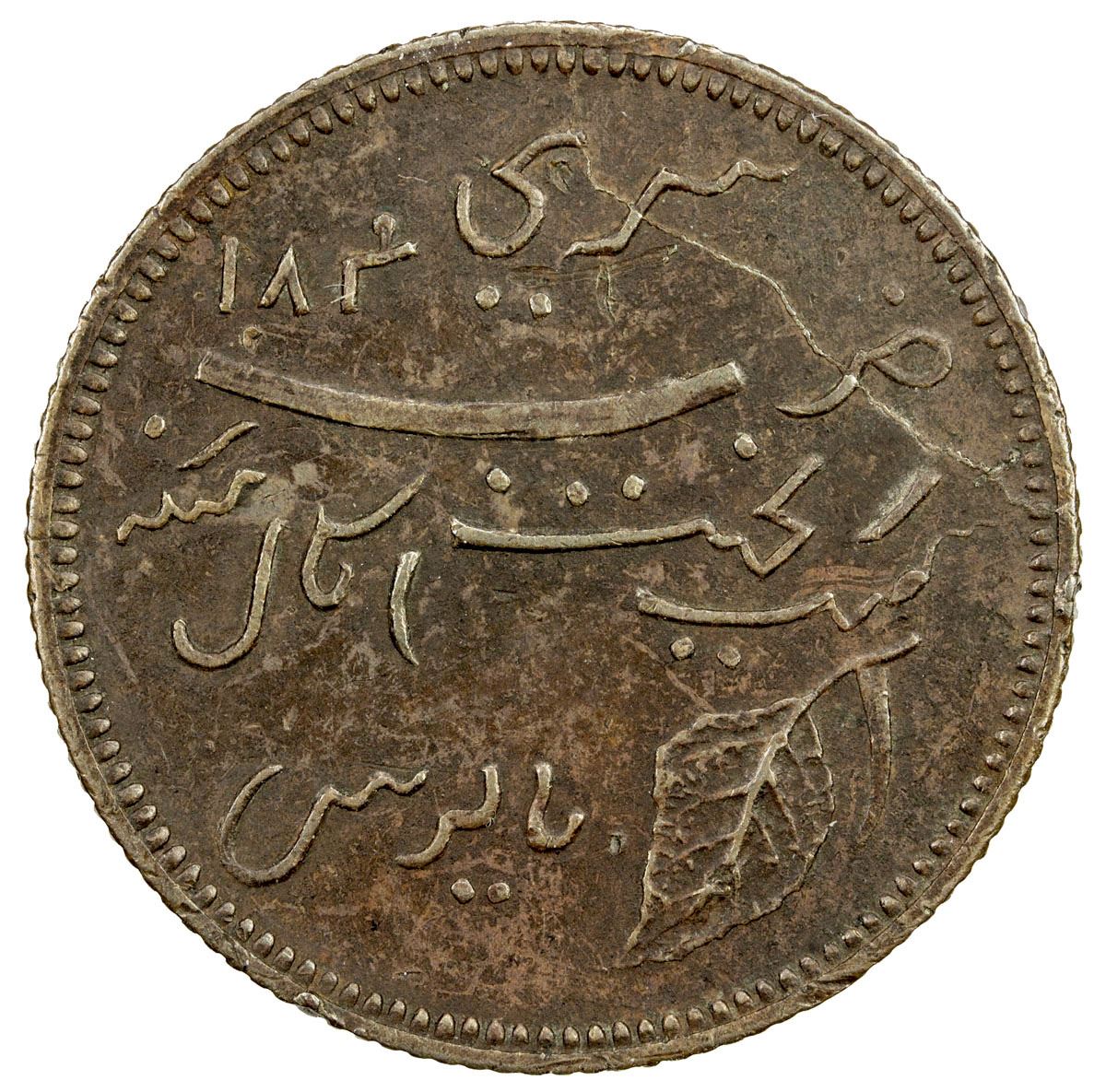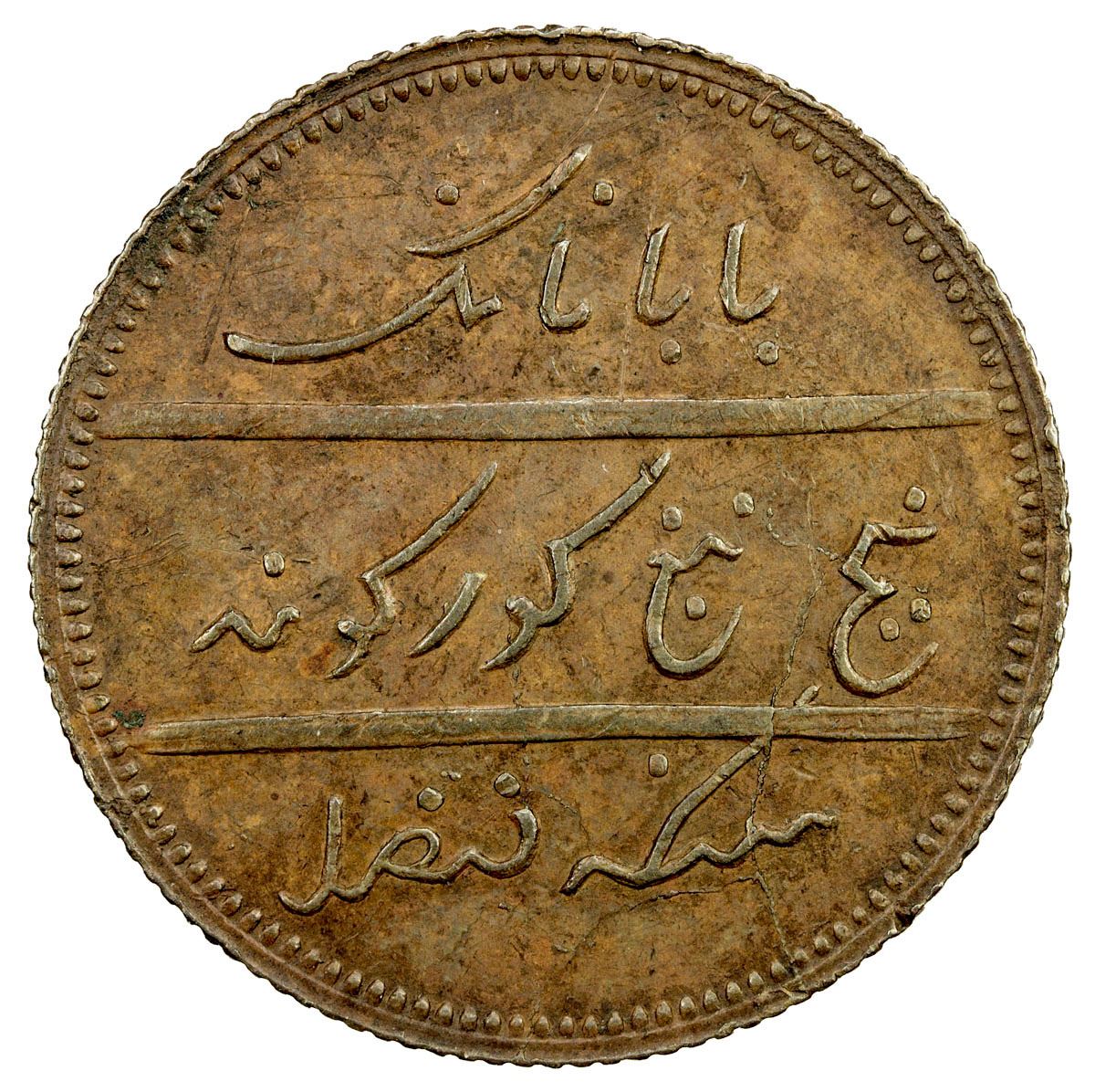 SIKH EMPIRE: AE paisa, 1830, KM-Pn1, Herrli-04-20-11, pseudo-Sikh machine-struck token or "pattern", also regarded as a fantasy: coarsely engraved Persian inscription on machine-struck planchet, citing Baba Nanak & Ranjit Singh, EF.
