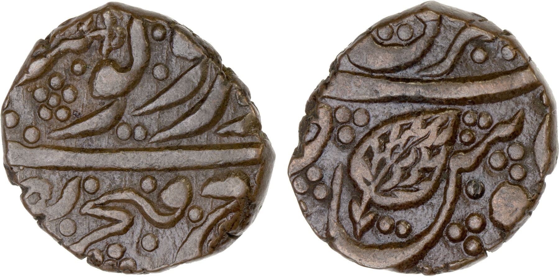SIKH EMPIRE: AE paisa (6.04g), Amritsar, DM/ND, KM-, Herrli-01.32.11/12, Persian legends both sides, known dated VS1897; extremely rare, with no examples on CoinArchives or acsearch, XF, RRR. There is apparently only one denomination of this type, roughly 6-7 gram weight.