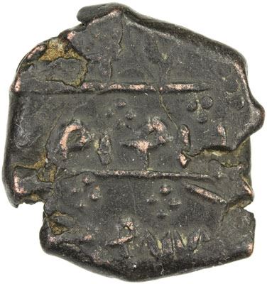 SIKH EMPIRE: AE paisa (7.87g), Peshawar, VS1891, KM-94A, Herrli-—, Persian obverse, Gurmukhi reverse, date in Arabic numerals above reverse, probably also above obverse, but off flan on this piece, VF to EF, R.