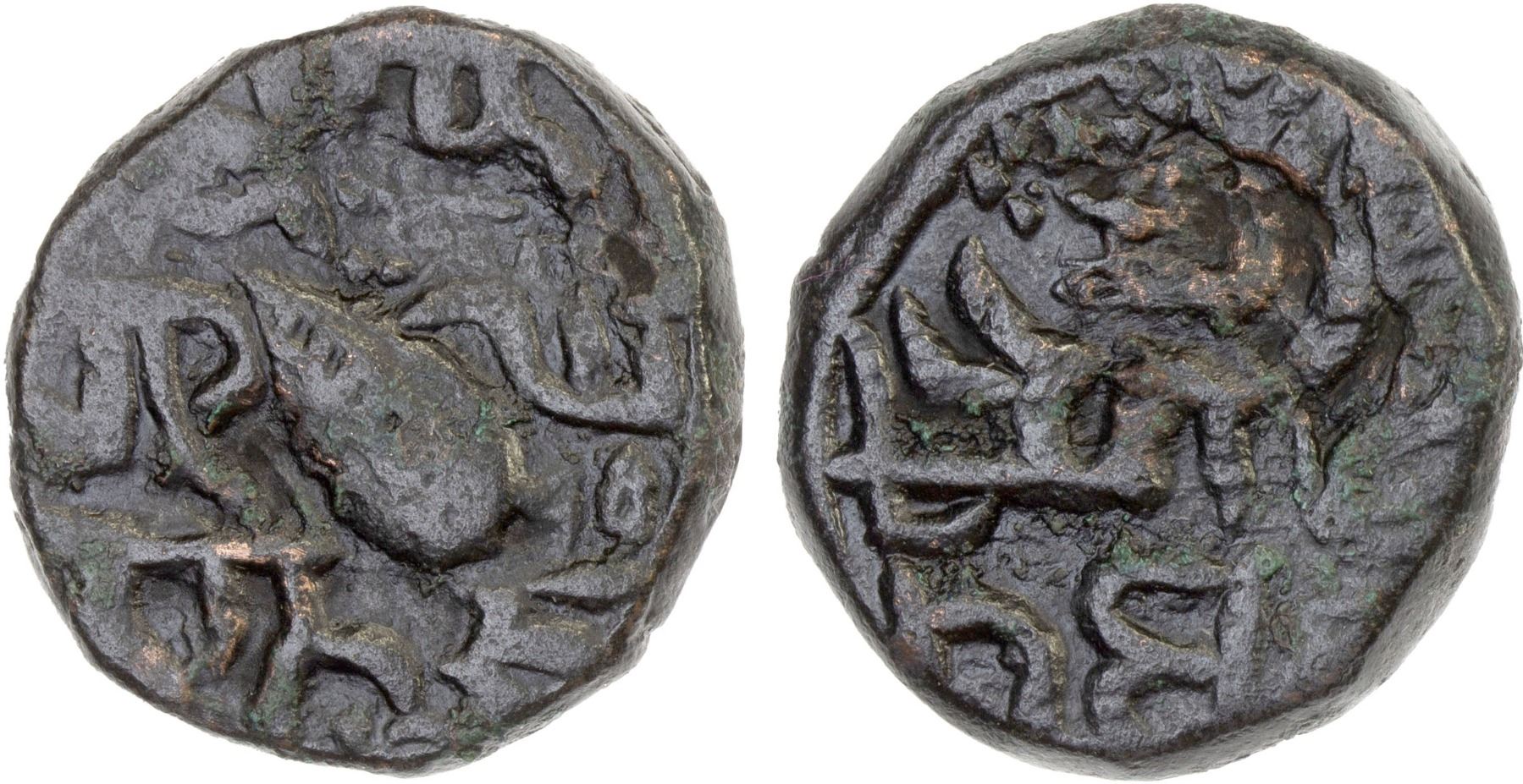 SIKH EMPIRE: AE paisa (9.04g), Dera, ND, KM-, SD-DR7, uncertain countermark on the reverse, VF, R.