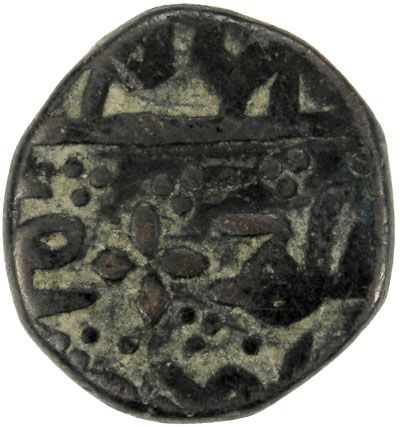 SIKH EMPIRE: AE paisa (9.99g) (Amritsar), ND, KM-7.4, Herrli-01.53, four-petal flower in reverse center, Fine to Very Fine, R.