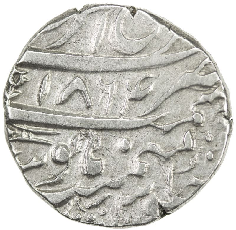 SIKH EMPIRE: AR gobindshahi rupee (10.57g), Amritsar, VS1864, KM-A20.4var, Herrli-01.20.04, attractive strike, VF, S.