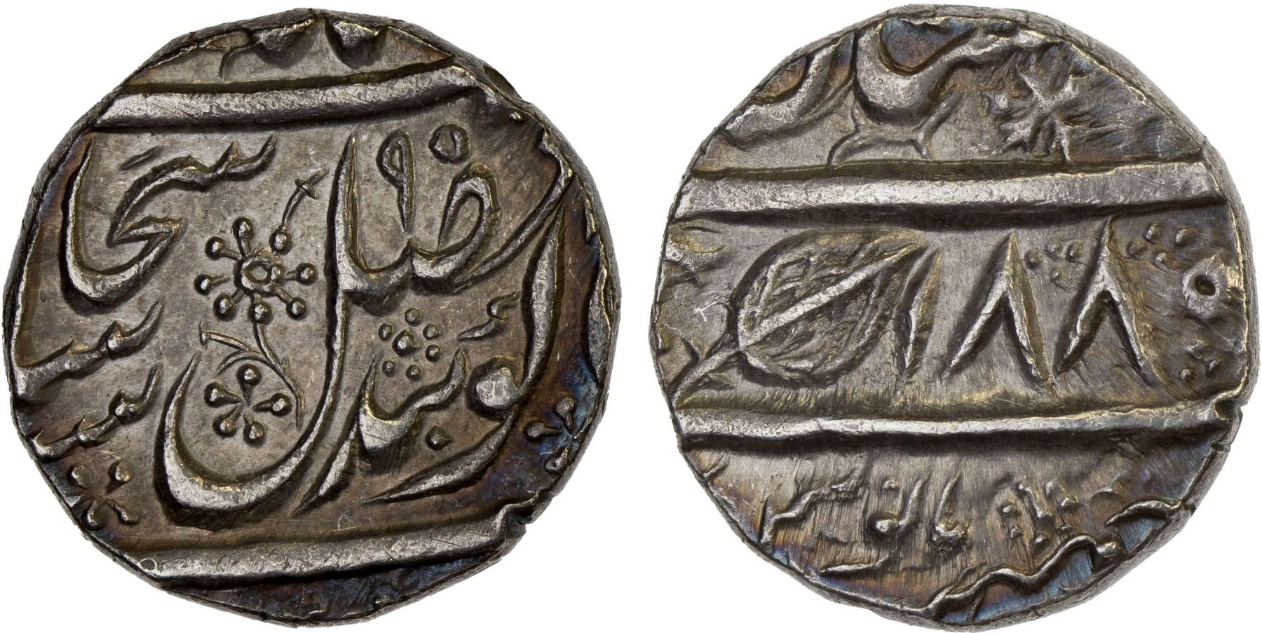 SIKH EMPIRE: AR gobindshahi rupee (11.06g), Lahore, VS[18]90, KM-66.2, Herrli-08.08.04, VS1885 series, superb strike, lovely moderate toning, Unc, R.