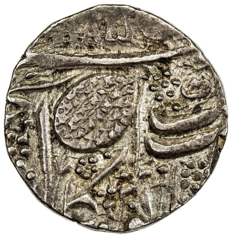 SIKH EMPIRE: AR nanakshahi rupee (11.08g), Amritsar, VS1903, KM-22.9, Herrli-01.12.04, Gurmukhi-64.01, VS1885 series, chhatra in obverse field, Gurmukhi SAT below, choice EF, ex Ajit Singh Collection.