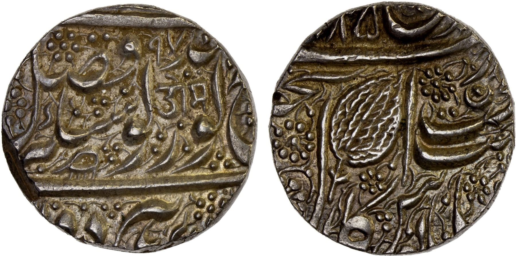 SIKH EMPIRE: AR nanakshahi rupee (11.12g), Amritsar, VS[18]97, KM-22.4, Herrli-01.11.04, VS1885 series, Nagari word OM in the obverse center; excellent strike, Unc.