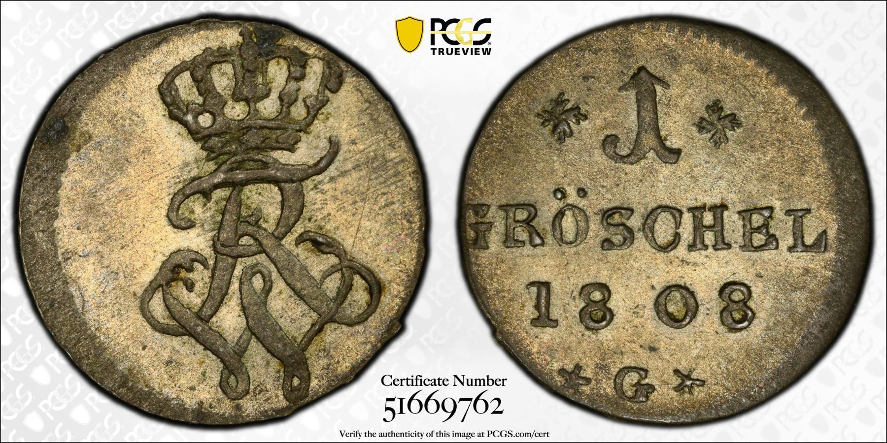SILESIA: Friedrich Wilhelm III, 1797-1840, BI gröschel, Glatz, 1808-G, PCGS MS63