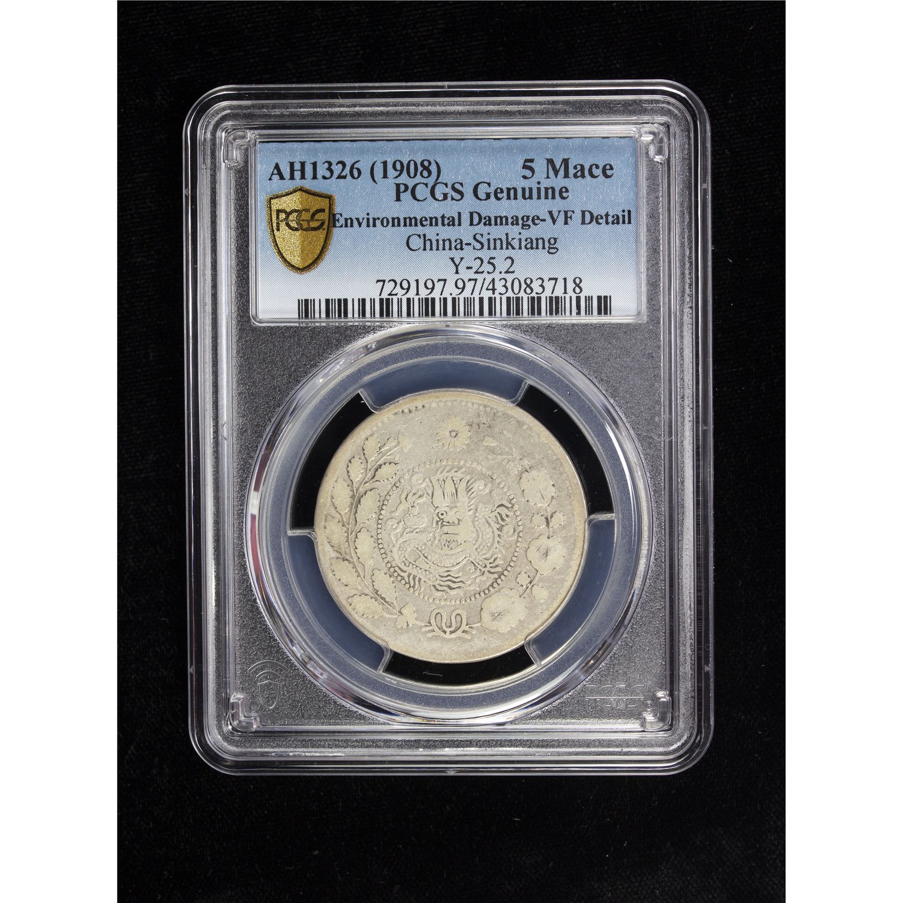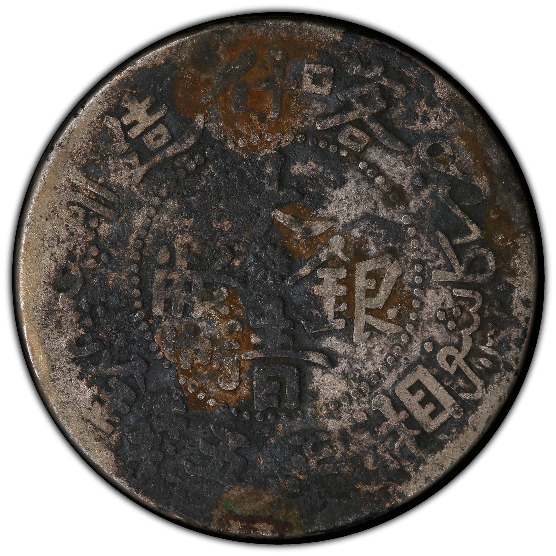 SINKIANG: Kuang Hsu, 1875-1908, AR 5 miscals, Kashgar, AH1326, Y-25.2, environmental damage, PCGS graded VF details, ex Shawn Hamilton Collection.