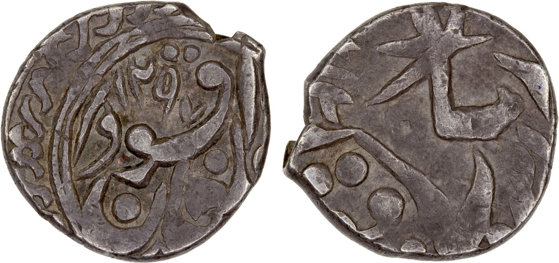 SINKIANG: Kuang Hsu, 1875-1908, AR 1/2 miscal (5 fen or fung) (1.73g), AH1297, Y-A7.5, L&M-778, Chinese character guang at center, Choice VF, ex Dr. Wolfgang Schuster Collection.