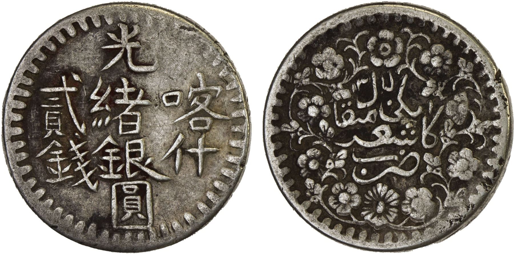 SINKIANG: Kuang Hsu, 1875-1908, AR 2 miscals, AH1315, VF