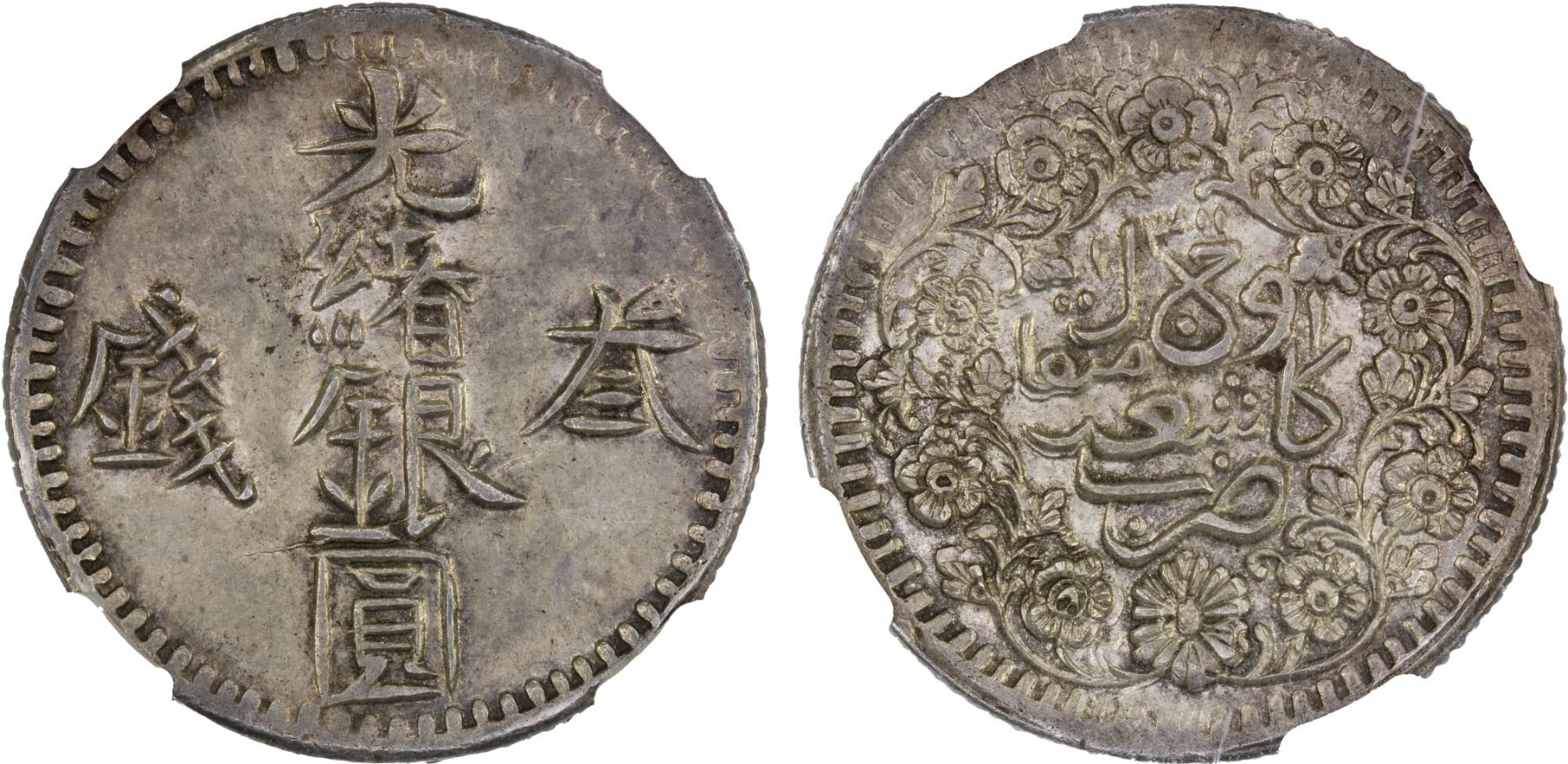 SINKIANG: Kuang Hsu, 1875-1908, AR 3 miscals, Kashgar, AH1311, Y-18A, an attractive example with luster, NGC graded AU50.