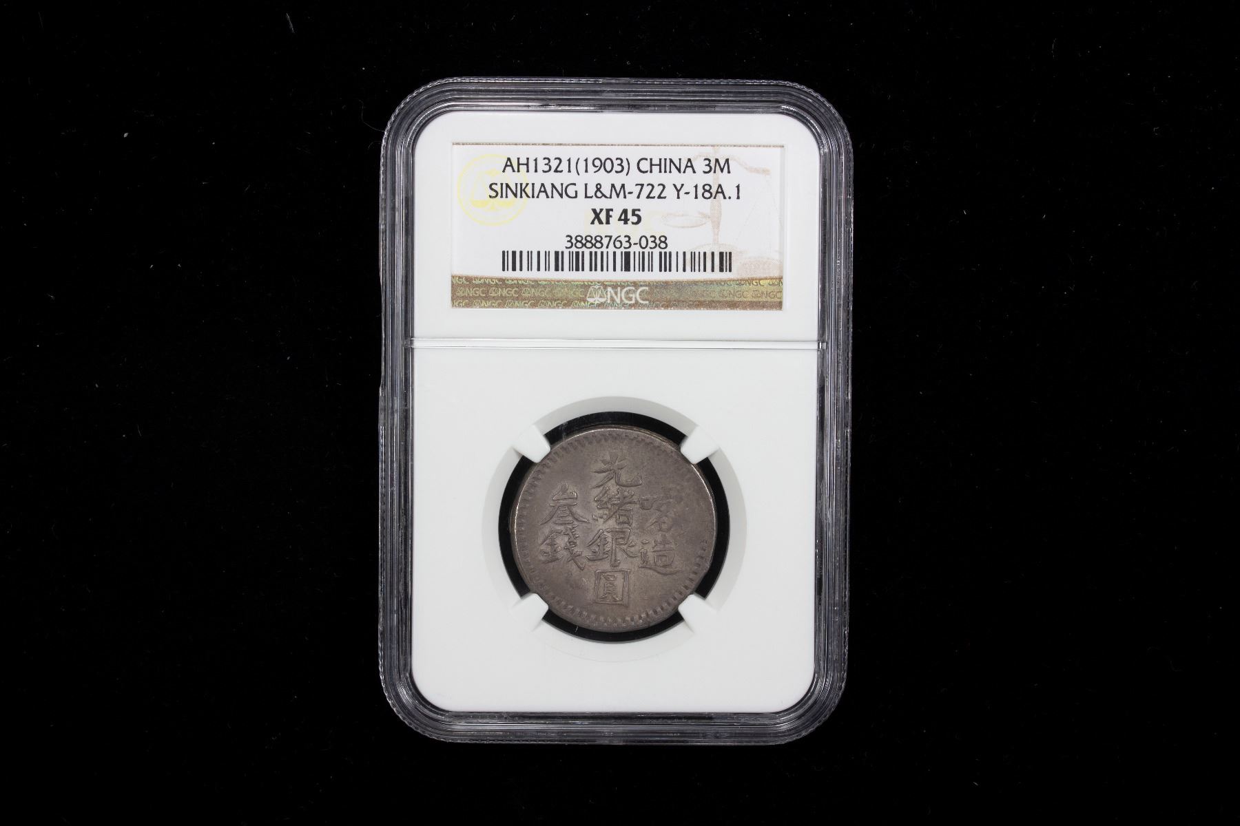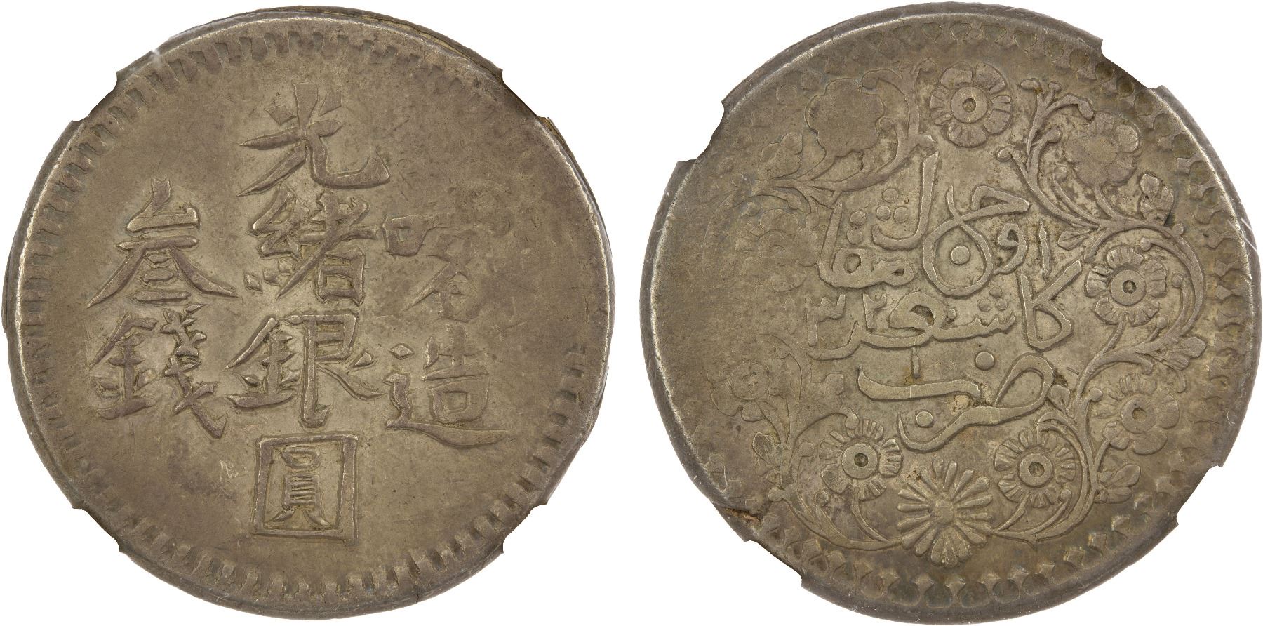 SINKIANG: Kuang Hsu, 1875-1908, AR 3 miscals, Kashgar, AH1321, Y-18A.1, NGC graded EF45.
