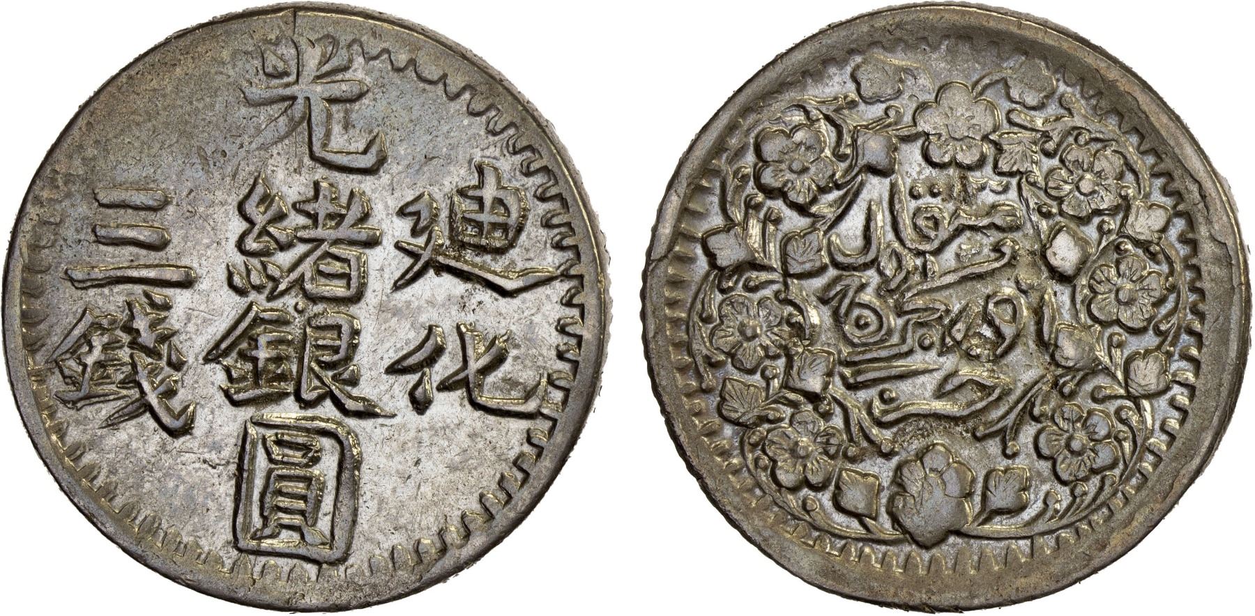 SINKIANG: Kuang Hsu, 1875-1908, AR 3 miscals, Urumqi (Dihua), AH1323, XF-AU