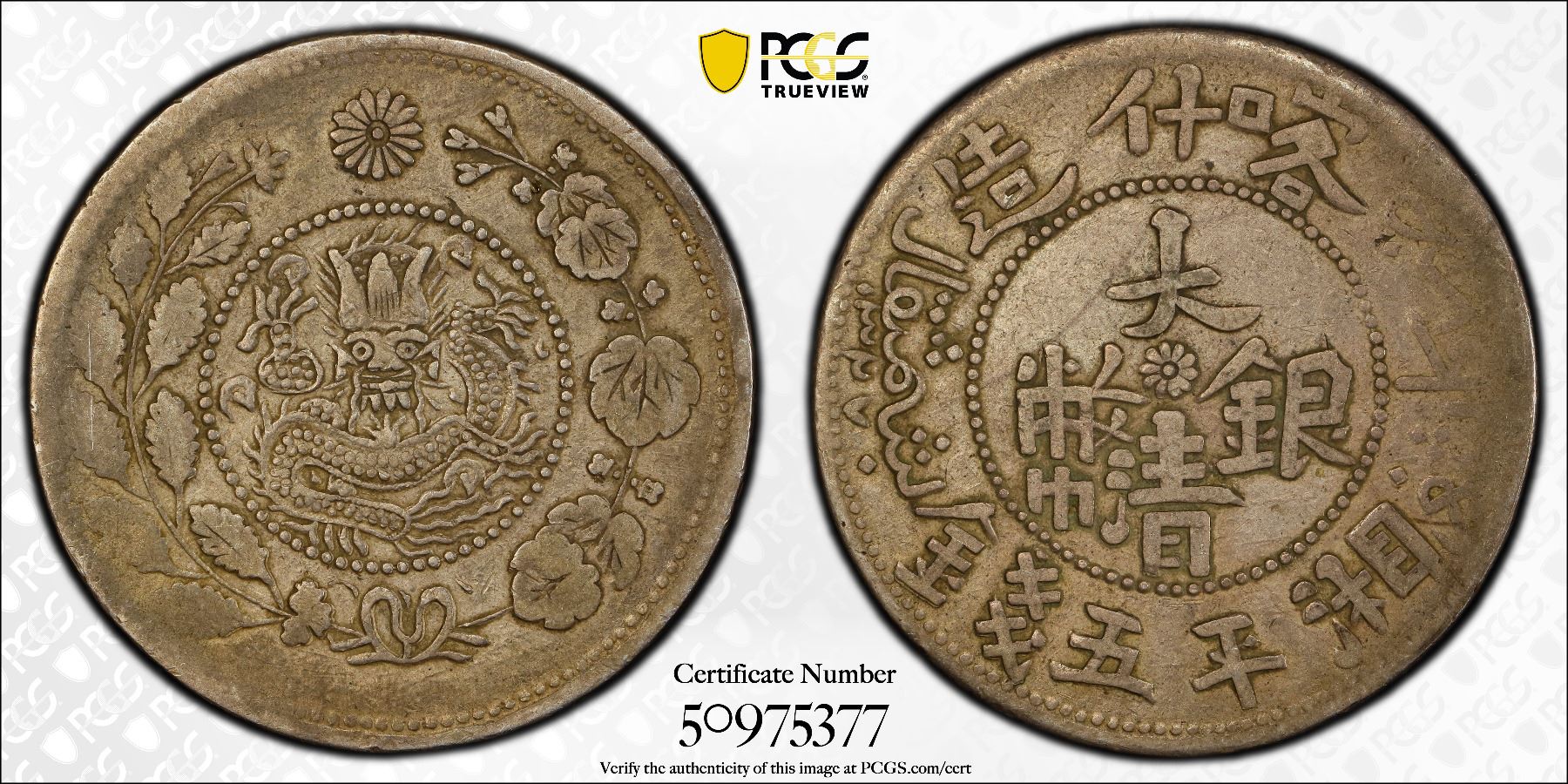 SINKIANG: Kuang Hsu, 1875-1908, AR 5 miscals, Kashgar, AH1327, Y-`25.1, bold dragon face, PCGS graded VF35.