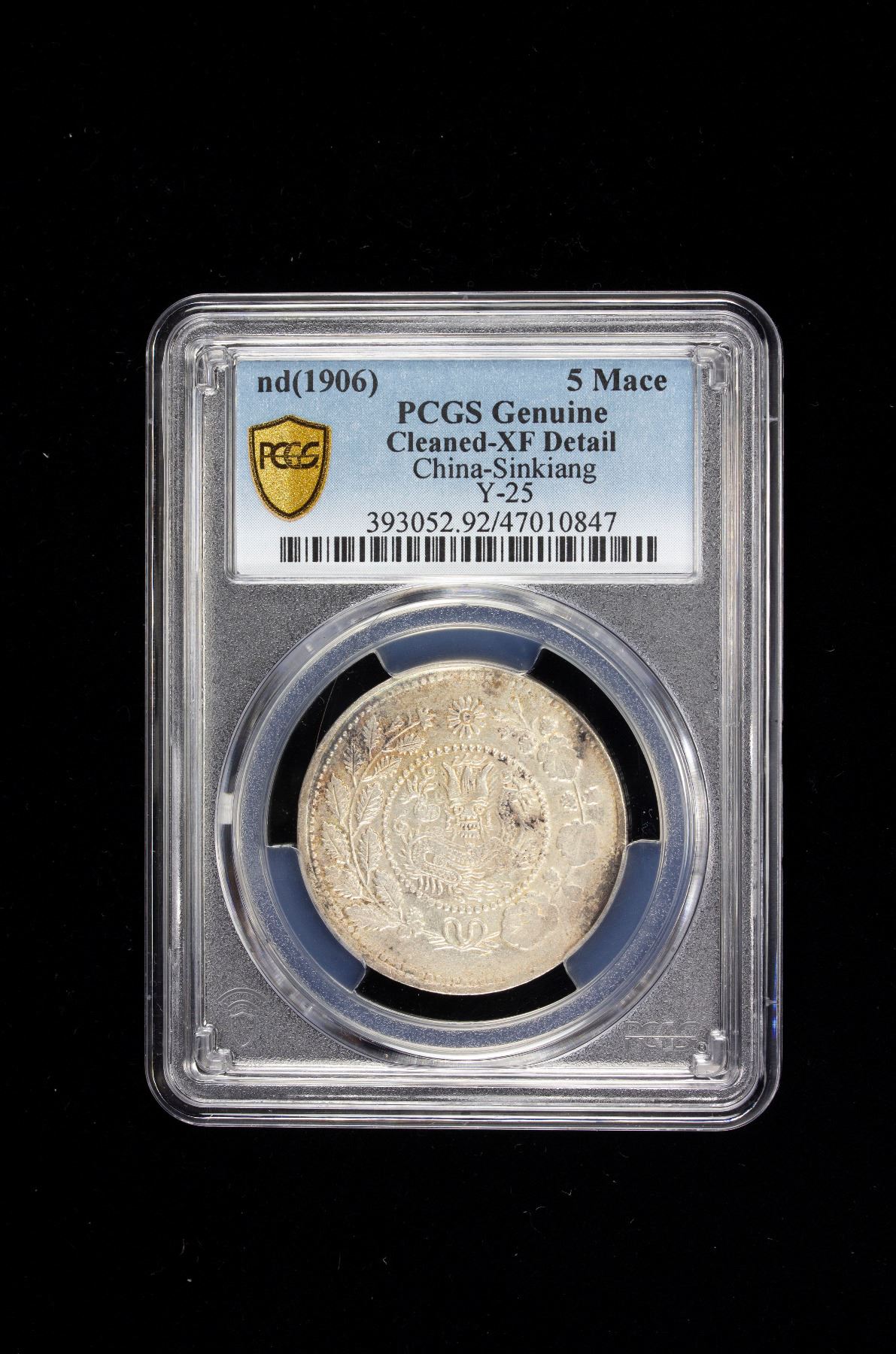 SINKIANG: Kuang Hsu, 1875-1908, AR 5 miscals, Kashgar, ND (1906), Y-25, cleaned, PCGS graded XF details.